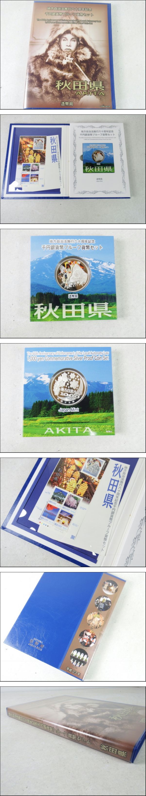 ■■② 地方自治法施行60周年記念 秋田県 1000円銀貨 プルーフ貨幣セット 記念切手(80円)5枚付 造幣局■■ | |||