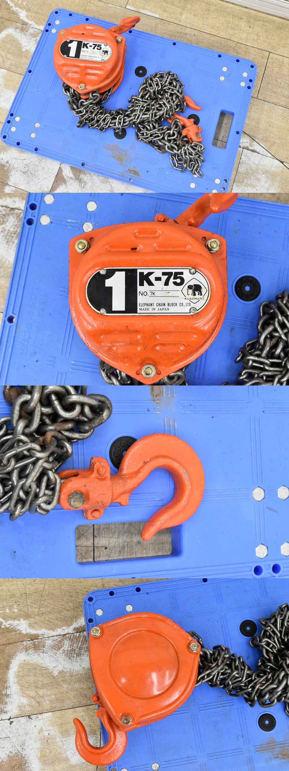 ----------------------------------------------------------------------------------------- ●送料や注意事項は必ずご確認下さい。落札後にトラブルになるケースが増えております。● ◆コンディションは写真・文章にて記載して有りますが、全てのキズの写真は掲載致しておりません。大きなダメージを除き見落とし、記載漏れが有る事はご了承下さい。 ◆当サイトにて出品する商品は多種多彩で、当方商品知識の無い物も多数ありますので落札後の質問やメンテナンス等にはお答えできません。 ◆入札された時点で、画像、文章をご理解していただいたものと判断させていただきます。不明な点は前もってQ&Aからお願い致します。入札後の質問やお電話等でのキャンセルは一切受け付け致しません。 ◆商品説明に「ノークレーム」と記載しているものに関しては、如何なる状況で届いても保証致しません。詳しくは注意事項の「商品到着後について」の最後に記載しておりますのでご確認下さい。 ---------------------------------------------------------------------------------------- 中古品ですのでキズ、ヨゴレ、サビ等有りますが、状態は良いでしょう。 動作確認OK品 チェーンの長さ測ってません。 台車は付属しません。 | ||