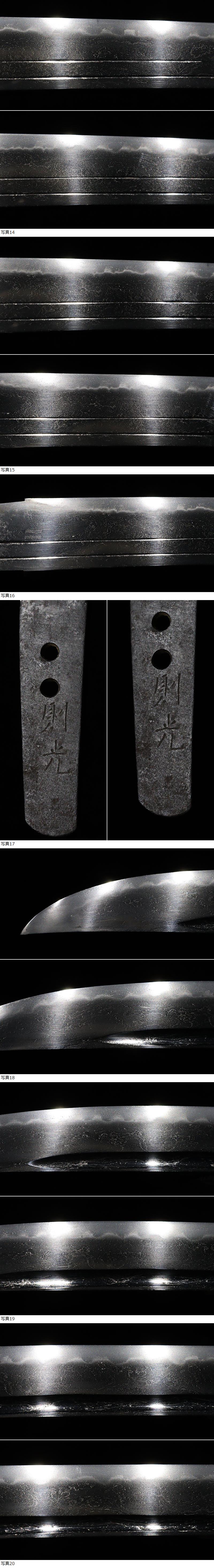 | ■刀剣のサイズ表示について 元幅・・・焼出し付近を測定しております 先幅・・・横手筋付近を測定しております 元重ね・・・焼出し付近の厚みを測定しております 先重ね・・・横手付近の厚みを測定しております (多少の誤差はご容赦ねがいます) ■銃砲類のサイズ表示について 全長・・・銃身先から台木尻までを測定しております 銃身・・・台木を除いて金属部分を測定しております (多少の誤差はご容赦ねがいます) 当社が出品する刀剣類は、入手した時の状態のまま出品しております。 ハバキ、小道具等も当社で調整したり付け替えたりはしておりませんので、合わせではないかというクレームは一切受け付けません。 刀身の疵も隠すことなく載せておりますので写真をよくご覧になってご入札ください。 疵に関して、説明がない等のクレームは一切受け付けません。 写真ではわかりにくい部分は質問欄やお電話でお問い合わせください。 但し、説明欄に表記のない刃切れに関してのみ返品やご相談に応じます。 ※ご落札しご購入されお手元に届いてから20日以内に 登録証に記載されている各都道府県の教育委員会にご連絡し 登録証の所有者変更を必ず行ってください | |||