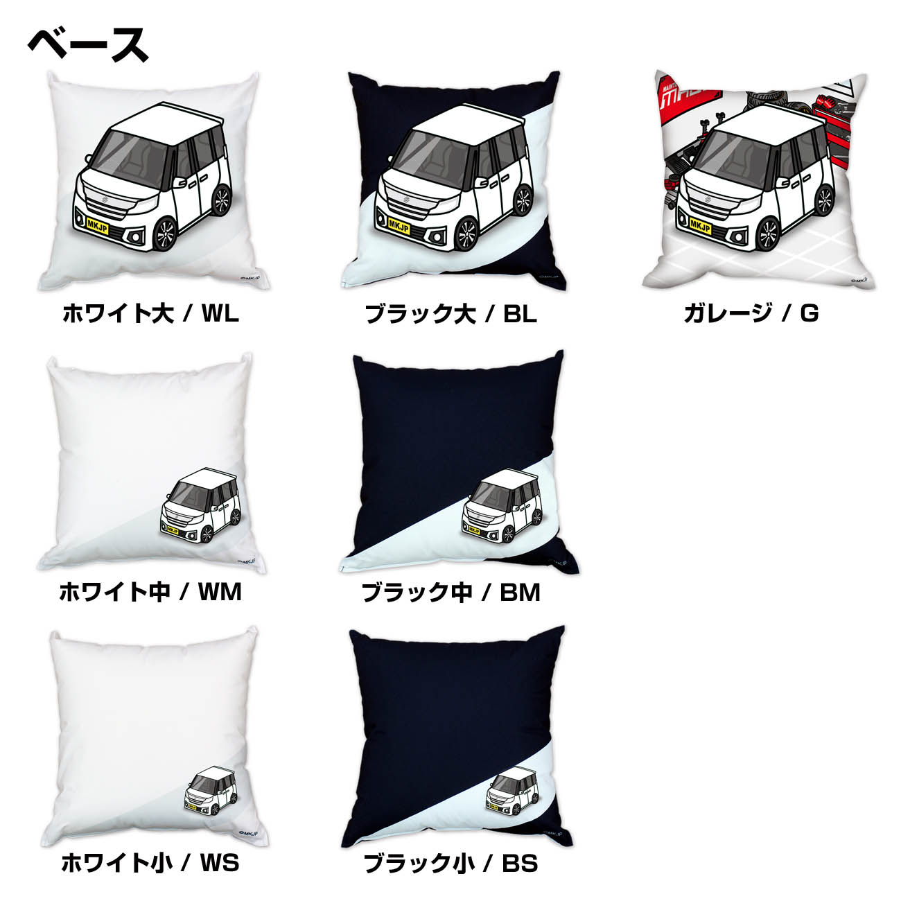 | 好きな車カラーが選択できます。車ボディカラーは16種類。【ホワイト/ブラック/グレー/ゴールド/水色/ピンク/パープル/グリーン/イエロー/ブルー/レッド/オレンジ/ワインレッド/ダークグリーン/グレー/ブラウン】の全16色から選択できます。ベースカラーは【ホワイト大/ホワイト中/ホワイト小/ブラック大/ブラック中/ブラック小/ガレージ】から選択できます。生地は人気の帆布。厚手で丈夫でかつ綿のような肌触りです。 カバーの中のヌードクッションは弾力がありふわふわの中綿が特徴。 オリジナルクッションはみんなに自慢したくなる逸品です。 下部ファスナーから中身のヌードクッションを取り出せば、ご自宅の洗濯機でカバーの洗濯ができます。 ポリエステル製なので洗濯後の乾きも早いので衛生的に使えます。 オフ会やカーミーティング・各種カーイベントなどでは、まだ販売していない、愛車と同じデザイン・カラーのカーグッズです。カーミーティングに配布したり、ビンゴゲームの景品にしたりするなど、クラブミーティングでは他にない賞品となります。 フロントバンパーやピラー部分、ルーフ、ドア部分、ヘッドライトサイドミラー・シート・フロントガラスなどボディ細部までデザインしています。ボディーカラーは16色「ホワイト・ブラック・シルバー・ゴールド・水色・ピンク・パープル・グリーン・イエロー・ブルー・レッド・オレンジ」のラインナップとなっています。 車種は、人気車種から旧車まで幅広くラインナップ。【代表車種】トヨタ:プリウス・ヴェルファイア・コペンGR・ランドクルーザー・アクア ホンダ:N-BOX・S660・シビックタイプR・N-VAN・N-WGN マツダ:MAZDA3・デミオ・CX-5・ロードスター・RX-8 ミツビシ:ランサーエボリューション・パジェロ・アウトランダー・デリカ・アイ ニッサン:フェアレディZ・スカイライン・GT-R・ノート・セレナ スバル:インプレッサWRX・フォレスター・レヴォーグ・XV・BRZ スズキ:ラパン・ワゴンR・エブリィワゴン・スイフトスポーツ・ジムニー ダイハツ:ハイゼットトラック・コペン・ムーブ・ムーブキャンバス・タントカスタム 車種によっては、前期・後期共にラインナップしている場合があります。その場合は、商品名に記載されています。前期モデルのみのラインナップや後期モデルのみのラインナップなども場合もあります。 車両に取付けるエンブレムや、キーホルダー・スマホケースなども同シリーズでラインナップしています。【すべて受注生産です】 |