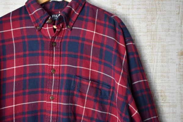 ●US USED FILA SPORT フィラ ネルシャツ チェック レッド赤×ネイビー【L】