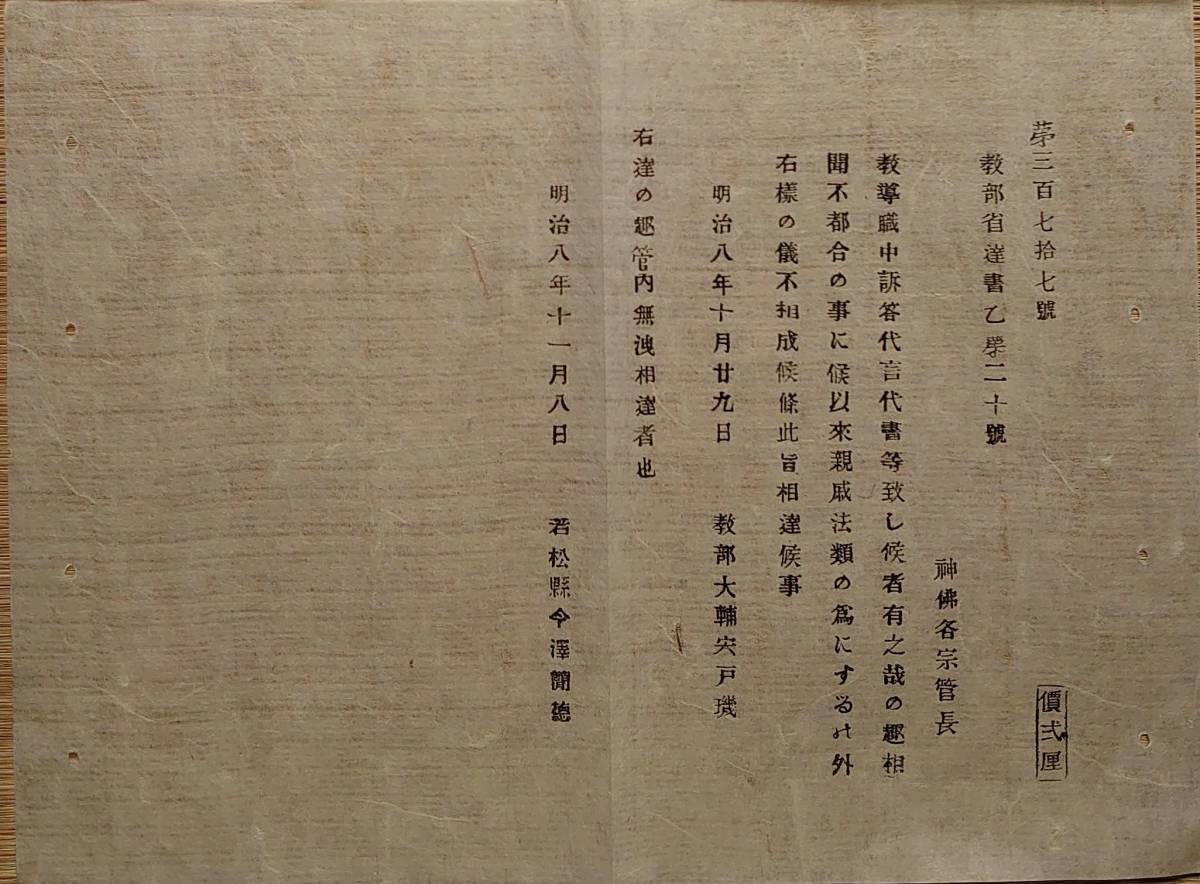 f20032302〇明治布告 教導職中訴答代言代書等致し候物有之 明治8年 福島県 若松県〇和本古書古文書| 出价者 | 信用 | 价格 | 时间 |