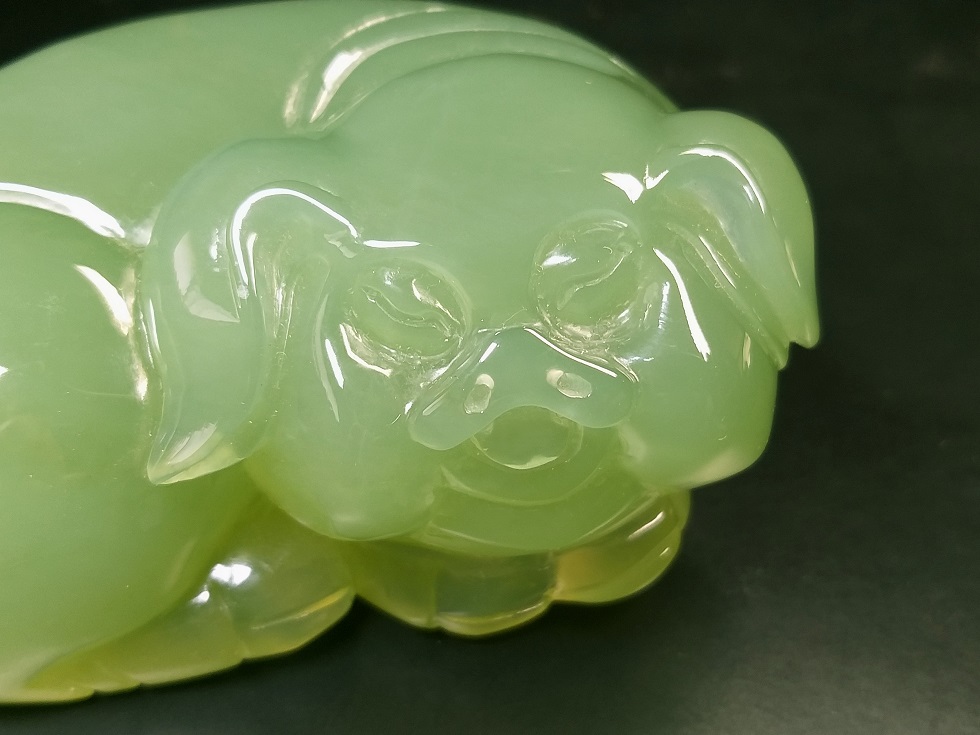 ●商品状態:商品状態は、写真でご覧頂ける状態です。玉器:問題はありません。15枚目の写真をご覧下さい。最高級玉器専用手工芸絹張り木製収蔵ケース(箱):手元に置いてから長期間に渡り」保管しており、ゴムの老化により溶けた4.5cmの跡が見られます。他の問題は、ありません。品質、性能は、自信ある一品です。収蔵未使用品です。