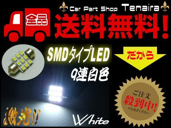 ■メール便送料無料!激光9連白色SMDLEDルーム球T10×31mm 車内ライト電球 | |||