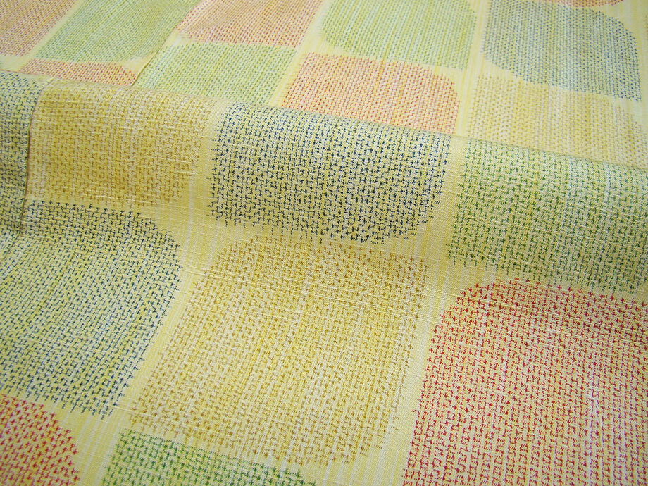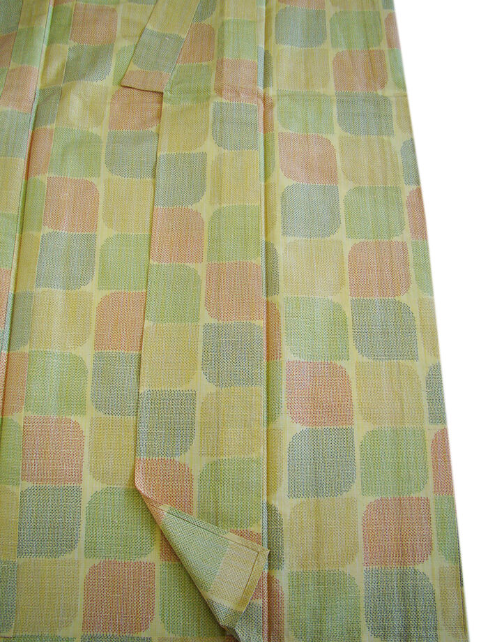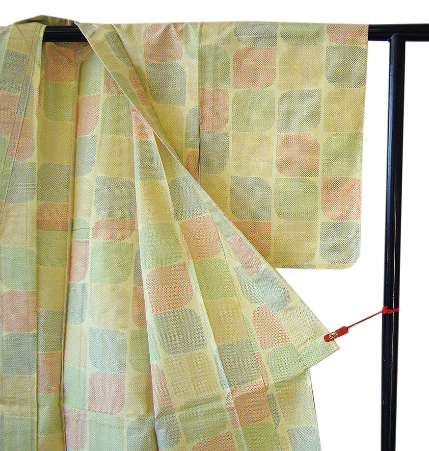 | 商品説明 | こちらのお品は「単衣」ですので5月、6月、9月にお召頂ければと思います。 着物には、大きく分けて「袷(あわせ)の着物」と「単衣(ひとえ)の着物」と「夏着物」があります。 反物(表地)を着物に仕立てるときに、裏地類をつけるものを袷の着物、 つけないものを単衣の着物と呼び、胴裏や八掛といった裏地がつかない一枚ものの着物です。 また裏地がないため、座る時などにヒップのラインが目立たないよう、 居敷当て(いしきあて)の生地をつけることもあります。 居敷当ては付いておりません。 しなやかでさらりとして手触り良く着心地良い涼やかな風合いの十日町紬地、 クリーム色地に赤、青、黄土、黄緑色等の織柄が洒落感高い着物姿を演出しております。 また、バチ衿仕立てとなっております。 |