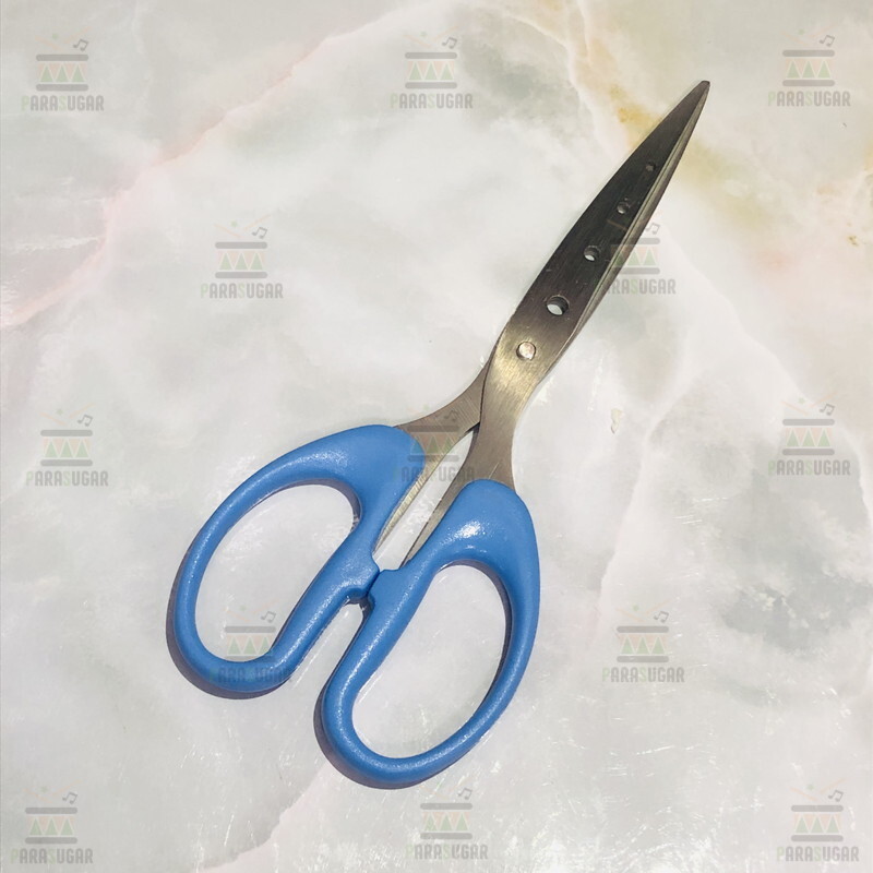 192mm 穴あきハサミ 【ブルー】 ビニールがよく切れる!
