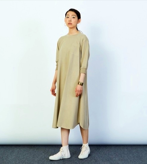 サイトより...カットソーの定番素材の40/2天竺を硫化染めすることで、柔らかな風合いとヴィンテージのようなニュアンスカラーを表現しました。