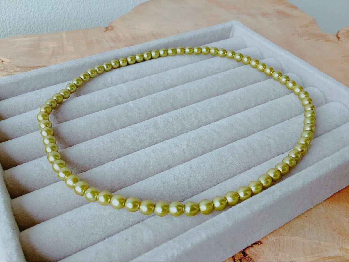 【Vintage】ヴィンテージ グリーン 4mm玉フェイクパール チョーカーネックレス/ブレスレット | |||