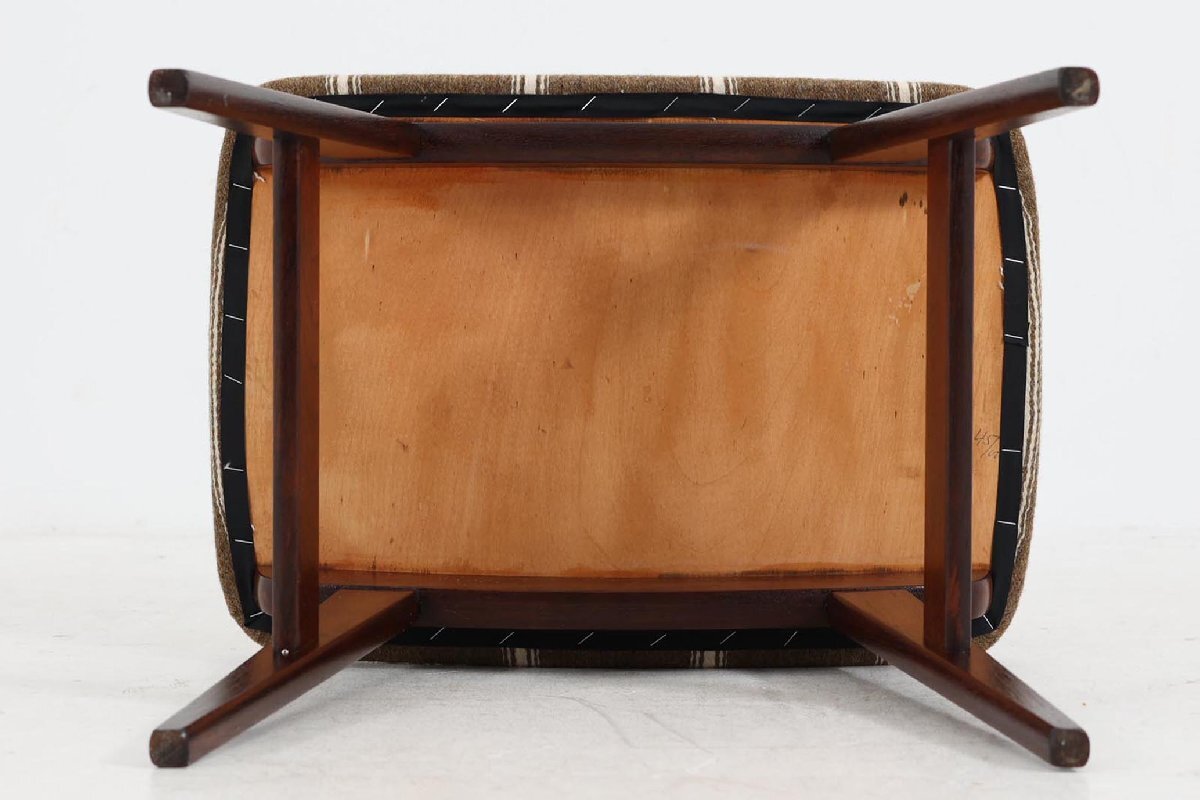 | コンディション | フレームに傷、擦り傷、細かい色ムラが見受けられます。デンマーク製のデッドストック生地(クリーニング済み)で張り替えを行いました。古い生地のため薄っすらと退色はございますが綺麗です。丁寧にメンテナンスを行いましたので綺麗な状態です。 ※ビンテージ品です。お伝えしきれない細かい傷や使用感等が御座います。ご了承下さいませ。 「メンテナンス内容」 内部のウレタンを交換後、張替え済みです。 |