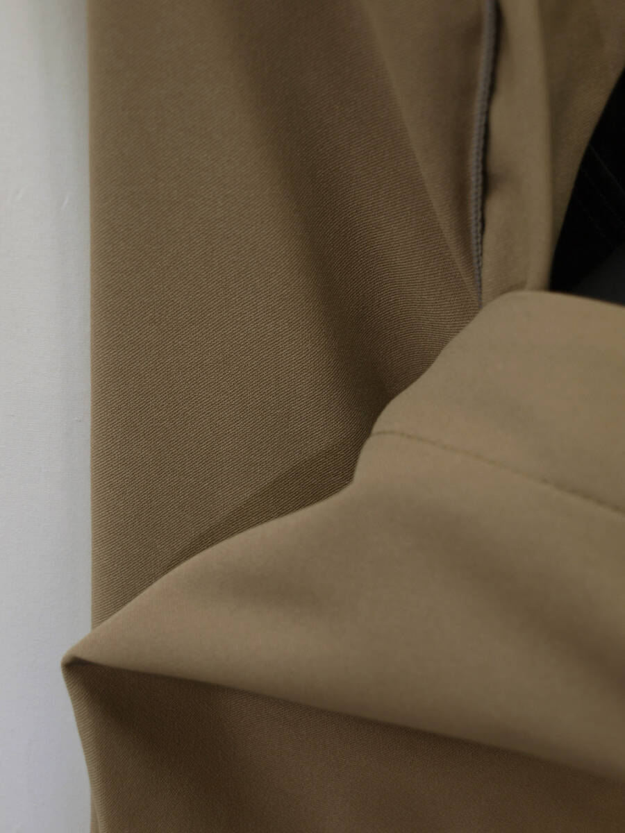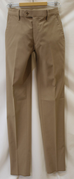 ■ ■ 【表記サイズ】 100cm 【実寸】 胴回り 最小100cm/全くひっぱらずに平置き採寸 適度にひっぱった状態で採寸すると110cm 渡り幅 35cm 股下から10cm下部分 32cm 股上 27.5cm(前股上 30.5cm) 股下 91cm (裾上げ未処理の状態/新品) 裾幅 22cm ■ ■ 素材/色など商品説明 ■ ■ 【素材】 ポリエステル70% レーヨン26% ポリウレタン4% 【色/柄】 黄土色無地 (ストレッチ性あり) 秋冬商材ですがわりと薄手の生地を使用しておりご着用の地域にもよりますが真夏を除くほぼオールシーズンご着用頂けます。 【仕様等】 ノータック、後ろポケット片玉縁で左のみボタン付き、ヒザ裏なし、フロントはファスナーでホック&ボタンどめ/ウォッシャブル対応(水温30℃以下、ネット使用、弱 水流)/シャツ滑りどめ付き きちんとベルトループも付いており見た目にはわかりませんがウエスト部分にストレッチの効いたベルト芯がはいっており5cm~10cm程度伸びます。 【デザイン】 もたつきのないすっきりとした細めシルエット、きれいめで大人のノータックストレッチスリムテーパードパンツです。 きちんとした縫製仕立てで、ウエスト部分もストレッチなので自然にのび立ったり座ったりした時や食後など圧迫感が少なく履き心地が良いです。 春秋冬メインのシーズン対応・新品・裾上げ未 ■ ■ お直しについて ■ ■ 別途料金にてお裾お直しを承っております。 お裾直しをご希望される場合、ご落札後、取引メッセージにてご連絡下さい。 料金は、シングル仕上げ1100円/ダブル仕上げ1300円/ウエスト詰め出し 1500円 (3~4cm程度までの直し)でございます。 オークション終了後、取引メッセージにてご指示下さい。 かんたん決済お支払い時、送料にプラスしてお支払頂くかたちになります。 お裾直しをうけたまわった場合、平日3~5日程(土日祝、夏季、冬季休業日除く)、出来上がりまでに日にちがかかってしまい、返品やサイズ交換などは出来か ねますことをご了承下さい。 ■ ■ お支払い&配送方法&送料等 ■ ■ お支払いはかんたん決済のご利用となります。 配送方法は一部地域を除いて佐川急便(袋/60~80サイズ)のご利用になります。 送料は、本州、四国/800円 九州/1200円 北海道/1300円 です。 離島もしくは一部地域は上記送料でゆうパックの利用となります。 ご面倒をお掛け致しますが沖縄県への配送の場合、ゆうパックのご利用(岐阜県から60~80サイズ)となりますのでお問い合わせ下さい。 到着日時、お時間指定帯(午前中/12時~14時/14時~16時/16時~18時/18時~20時/19時~21時)のご指定可能。 複数ご落札頂いた際、同時梱包/まとめて配送で送料は1点分にてお送り致します。 ヤフーかんたん決済お支払いお手続きが完了次第、定休日(土日祝)除く毎17時締めにて即日発送致します。 毎平日17時頃までの発送業務となります。 ご入金確認後、即日発送を心がけておりますが、土曜日、日曜日、祝日、 夏季(8月13日~8月16日)、冬季(12月30日~1月4日)とお休みを頂いておりますので、 その間御入金を頂いた場合、翌平日の発送となりますことをご了承下さい。 ■ ■ コメント ■ ■ 新品ですが在庫に限りが御座います為、大変申し訳御座いませんが、ノークレーム・ノーリターンにてどうぞ宜しくお願い致します。 K00---76--- |