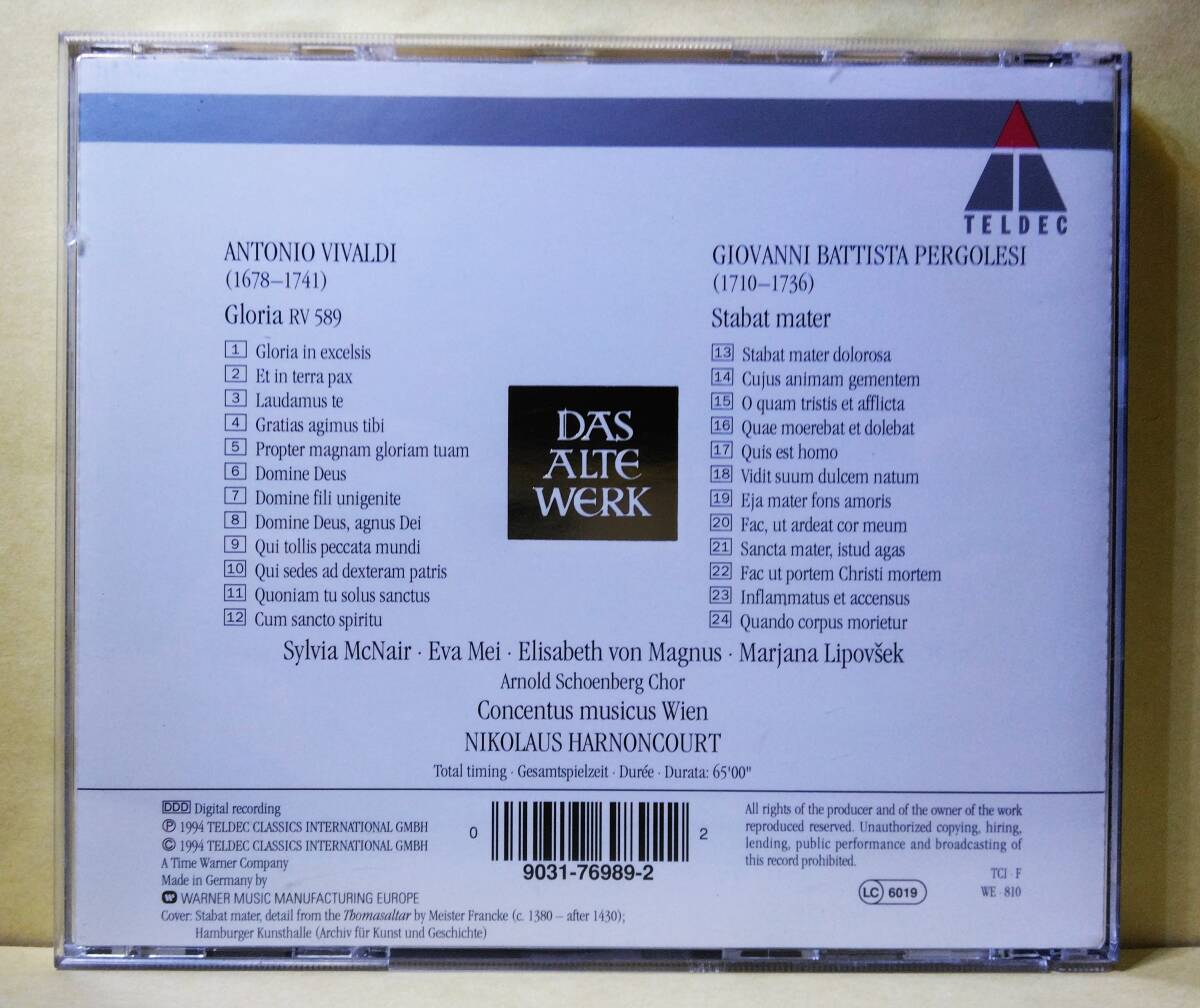 ♪Vivaldi:Gloria/ Pergolesi:Stabat Mater(ヴィヴァルディ:グロリア /ペルゴレージ:スターバト・マーテル)アーノンクール(指揮)輸入版