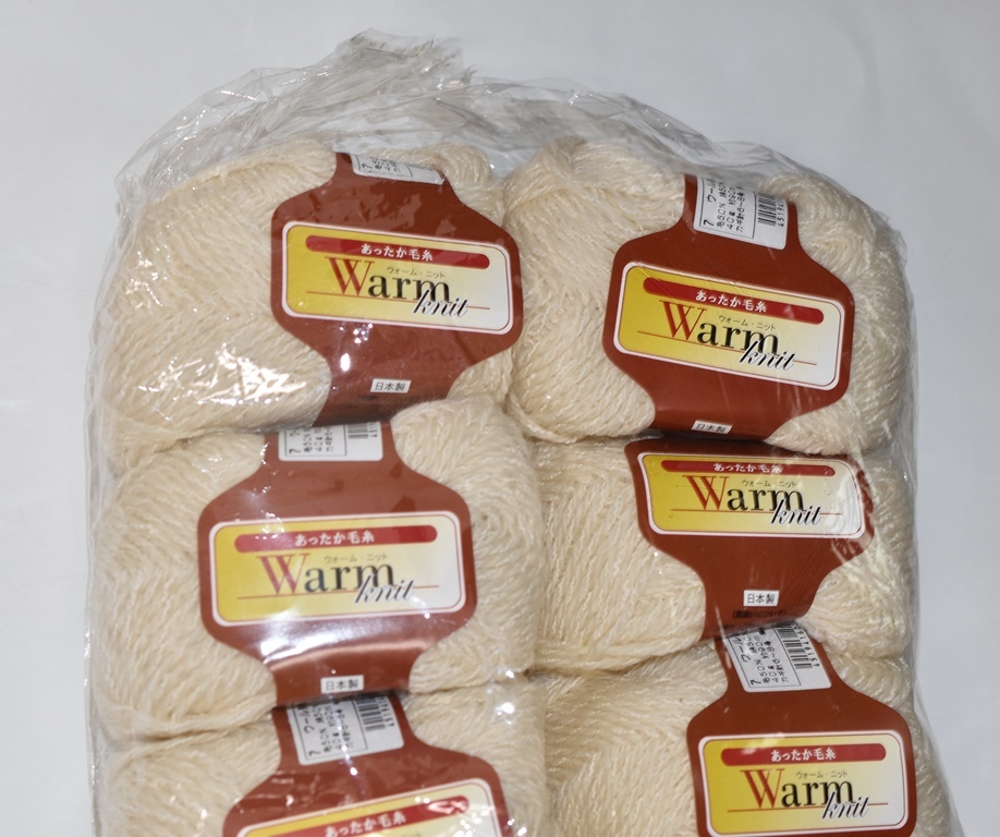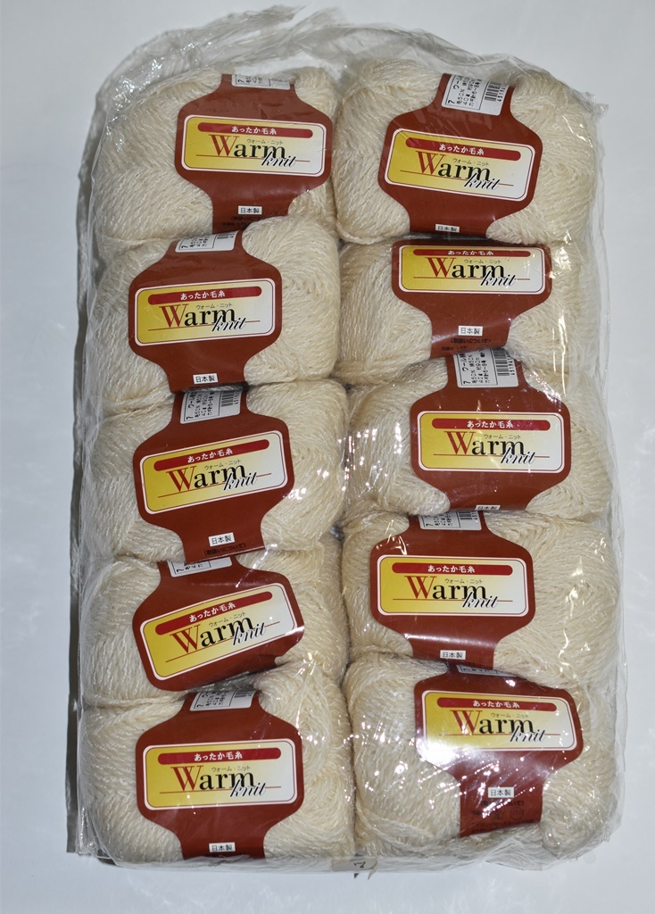 | 【新品未開封・長期保管品】ウォームニット(日本製)毛糸 並太 90m 10個セット(col No.7) クリーム |