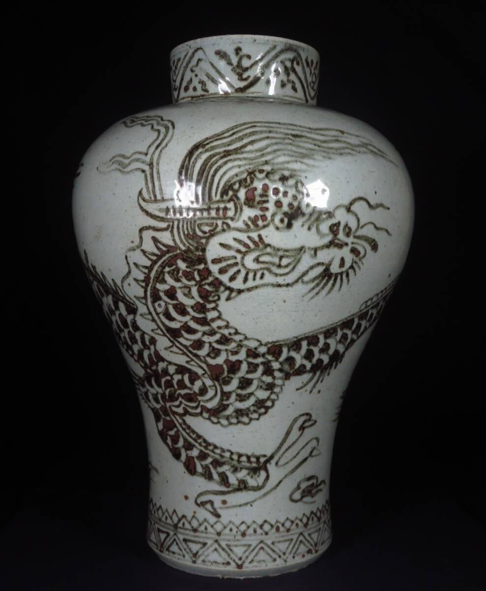 | 【SAKURAYA】コレクター委託品【李朝 白磁 鉄絵雲龍文大花瓶】飾壺 壷 朝鮮古美術 朝鮮古陶磁器 骨董品 古美術品 高麗 韓国 時代物 43cm | ||