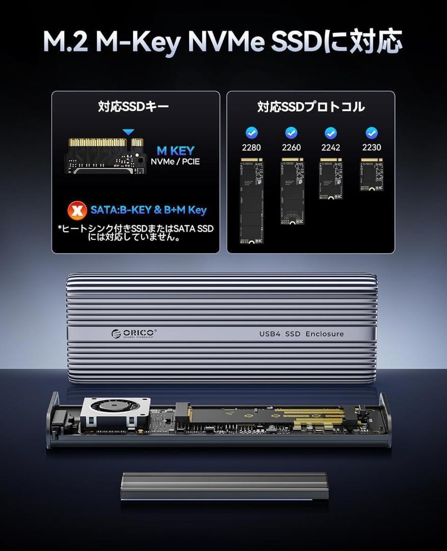 ORICO M.2 SSD 外付けケース 40Gbps 工具不要 USB4 NVMe M.2 SSDケース ファン内蔵のアルミニウム合金Thunderbolt 4 SSD ケース2230 2242 2260 2280(Mキーのみ)対応、USB4/3.2/3.0/2.0対応 - ACOM2| 出价者 | 信用 | 价格 | 时间 |