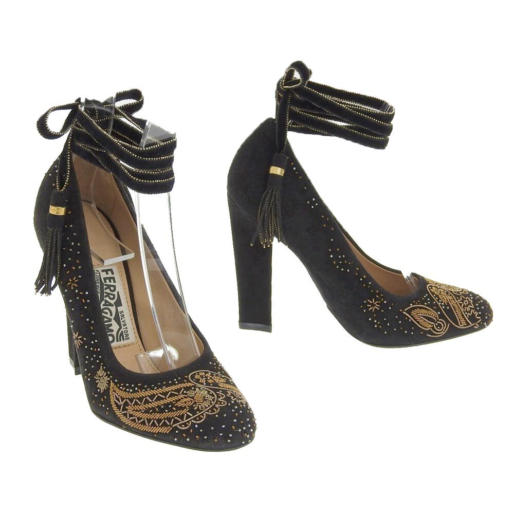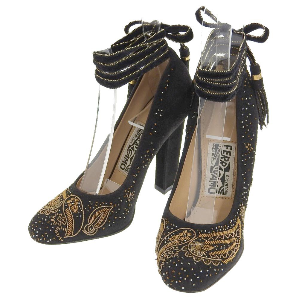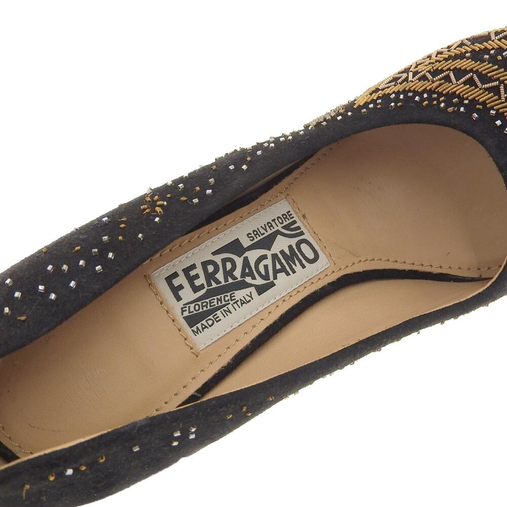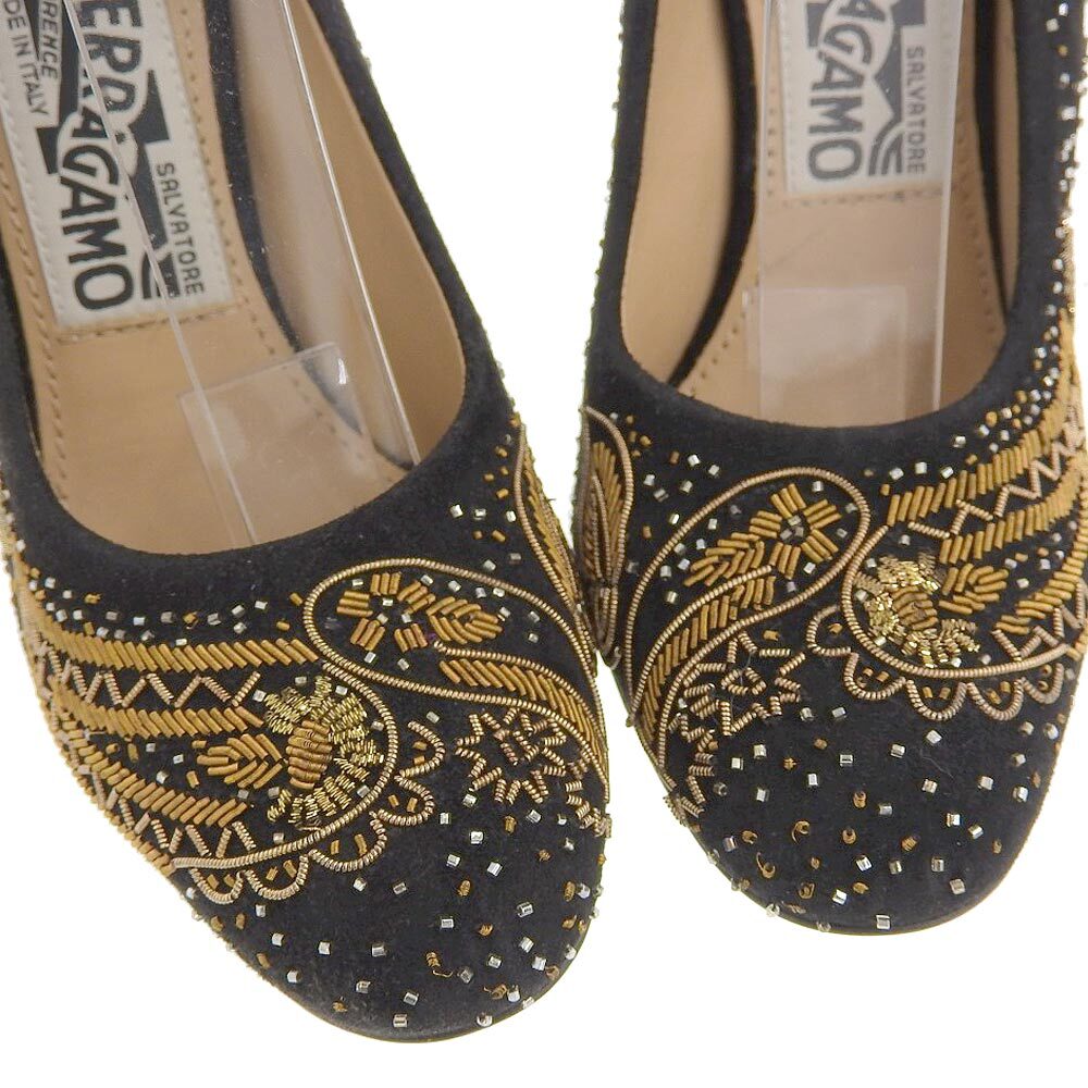 | 未使用 フェラガモ 現行タグ TWAIN スエードレザー ラウンドトゥ ビーズ刺繍 パンプス 4 1/2 21-21.5cm |