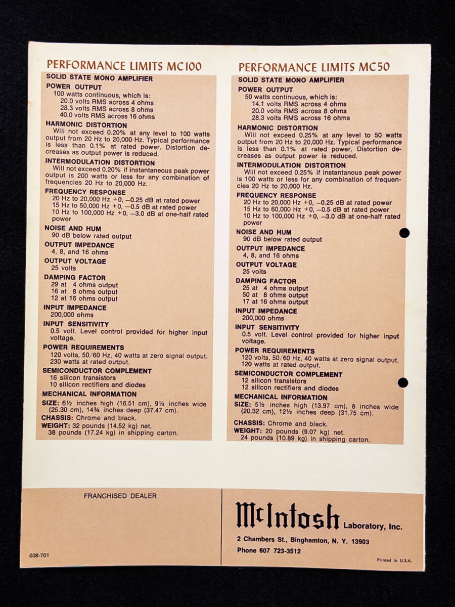 【yahooオークションアプリでご覧の方へ】| 3Q売切!税無し◇マッキントッシュ アンプ MC2100/MC250 カタログ★レトロ★ヴィンテージ★★0716-15 |