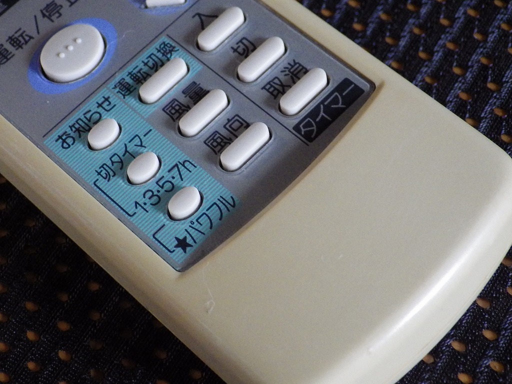 SHARP シャープ エアコン用リモコン A513JBの出品です。 中古 通電確認 OK 単四乾電池2本で駆動。 液晶表示正常。 発信部赤外線出力 確認済み。 ※全ボタンは未確認。 【出品内容】 画像に写っているものが全てです。 ※乾電池は付属しません 使用及び保管に伴う、キズ・汚れ、色あせ等ございます。 商品の程度・状態は、掲載画像にてご確認下さい。 上記内容を十分ご理解頂いた上でのご入札お願いします。 神経質な方、程度を非常に気にする方はご入札をお控え下さるようお願いします。 お探しの方!この機会にいかがでしょうか? | |