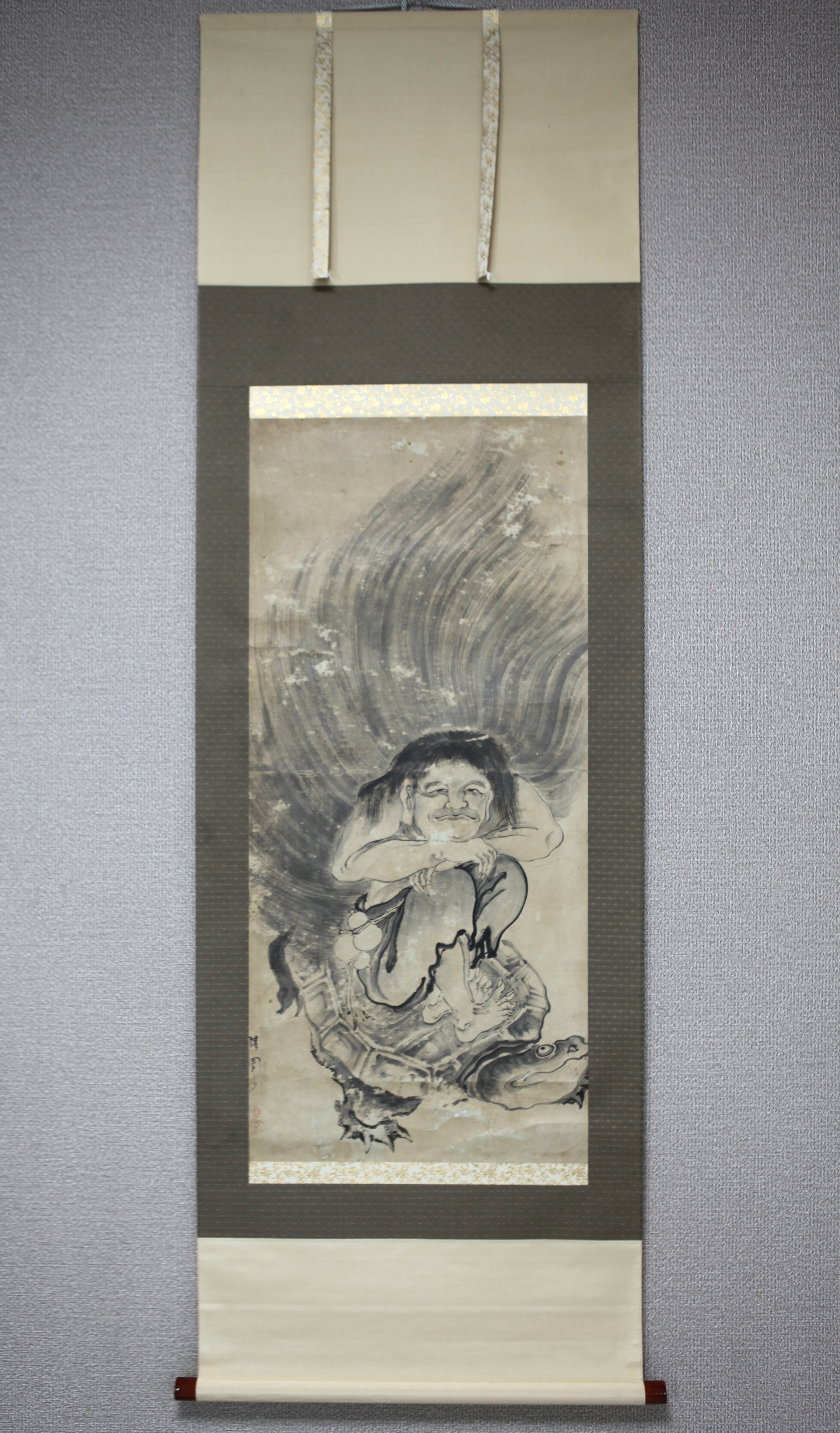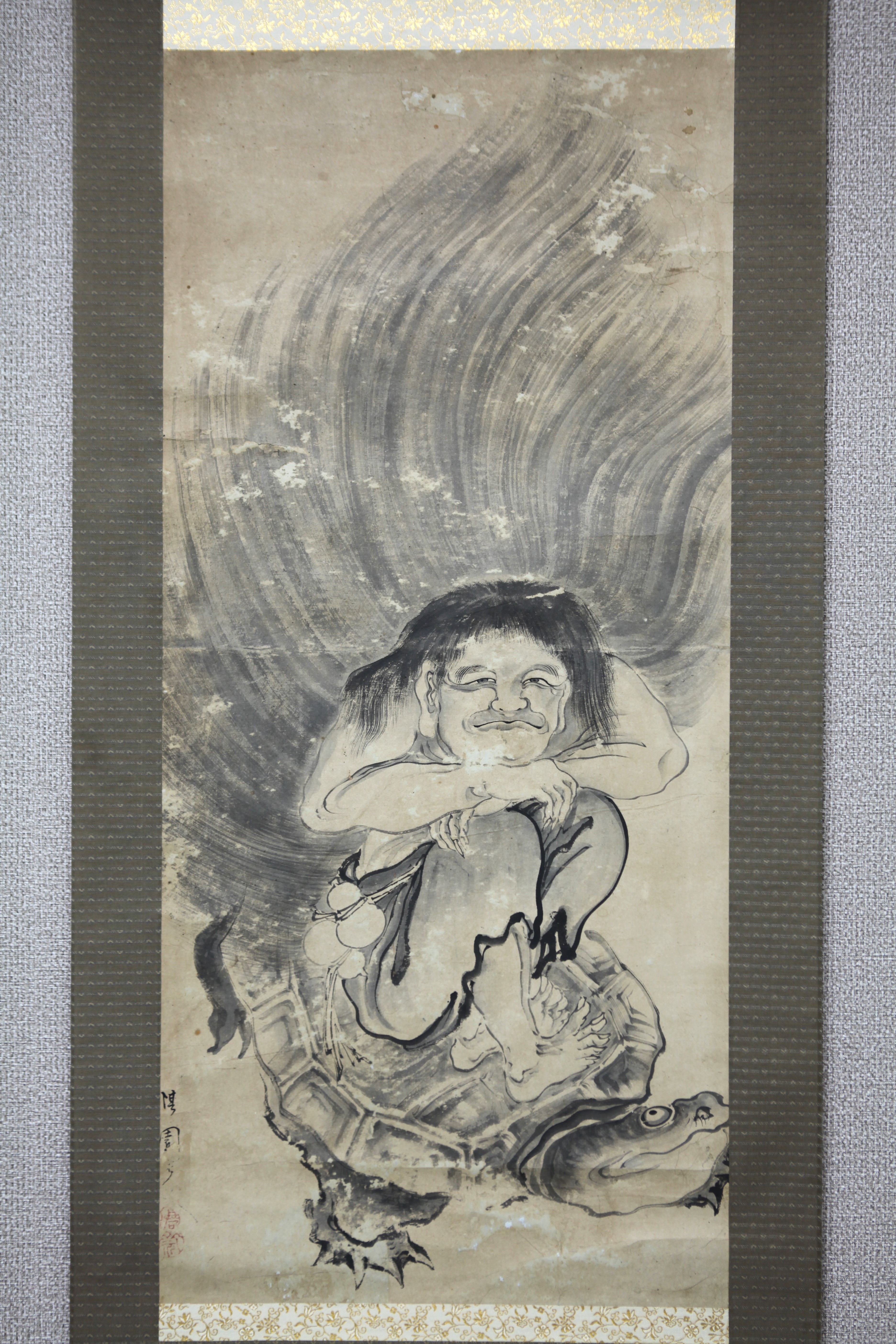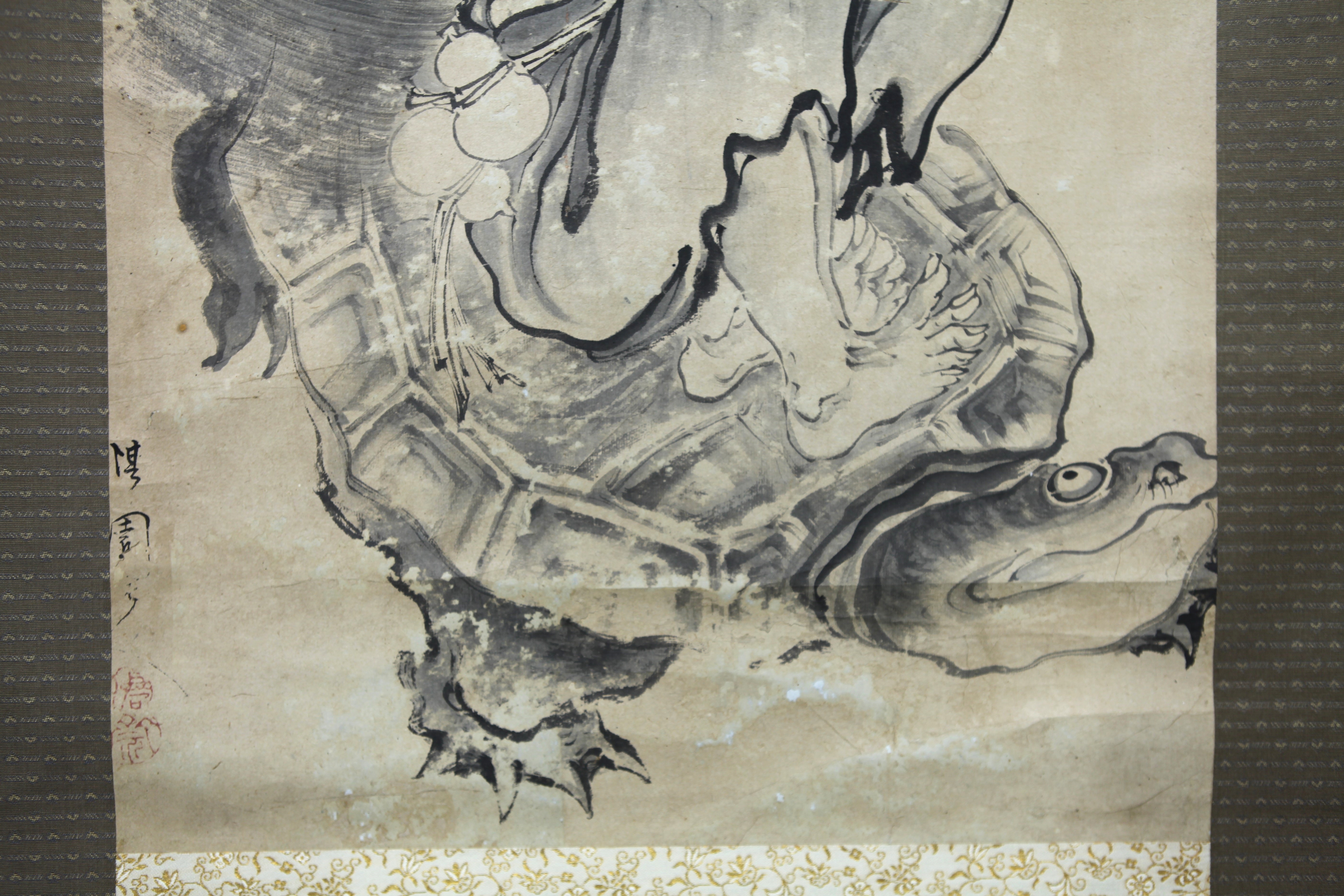 | 【真作】【風車】 柳沢淇園 「仙人と亀図」◎肉筆紙本◎巨匠 江戸中期の画家 公美 柳里恭 大和郡山藩の重臣 文人画の先駆者 | ||||||||||||||||||||