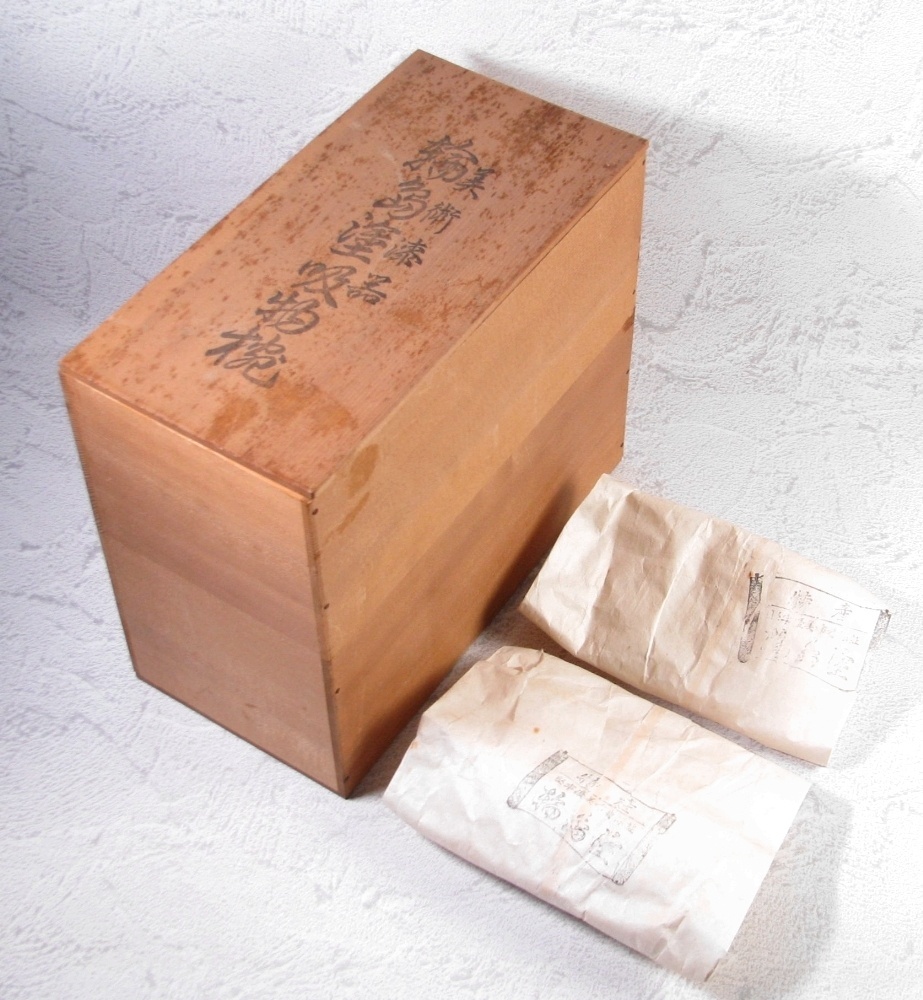 | 状態 | 器2枚、蓋1枚にヤケがあります。また、高台底に名前を消した跡があります。 その他は概ね良好ですが、多少の使用痕は伴います。 |