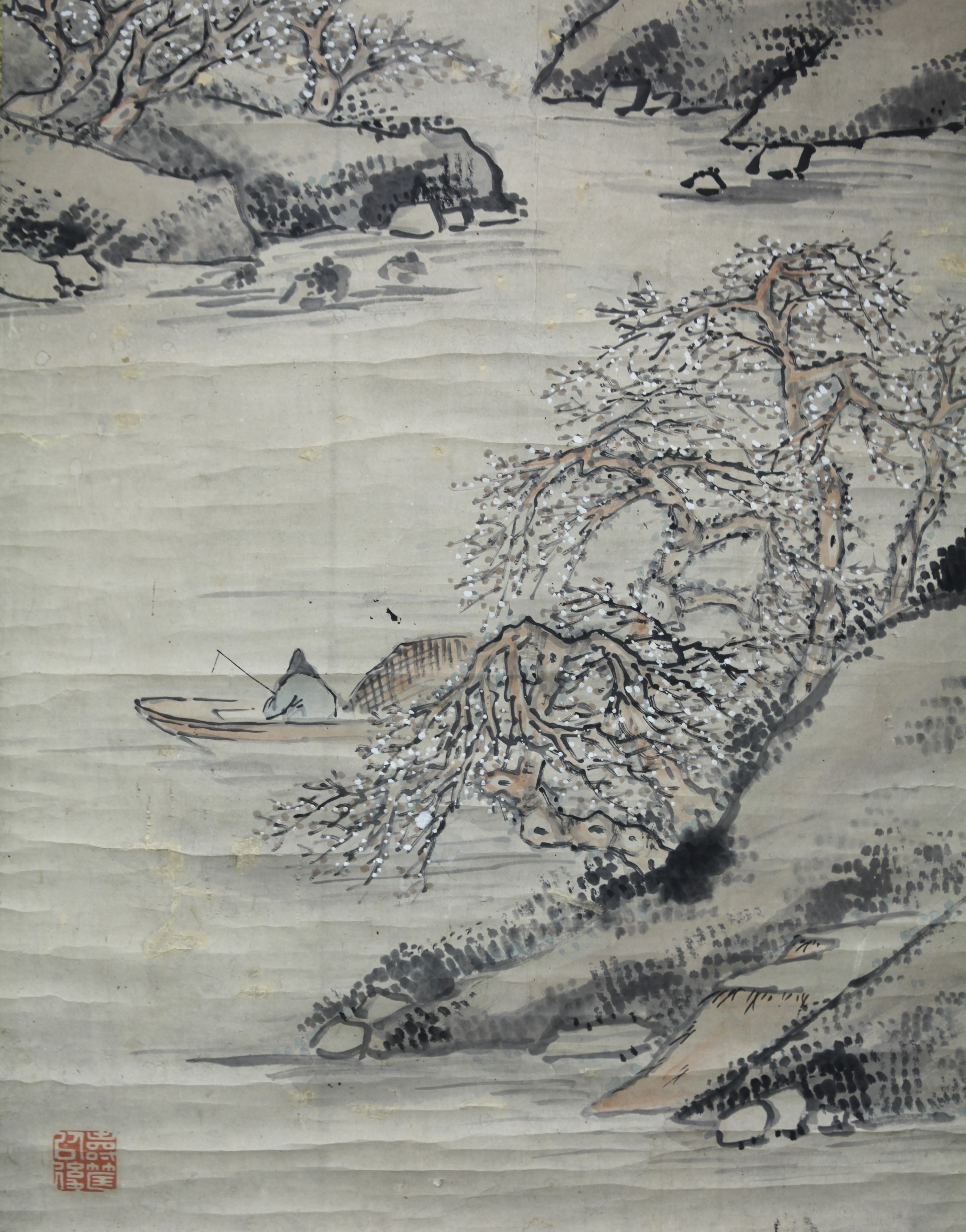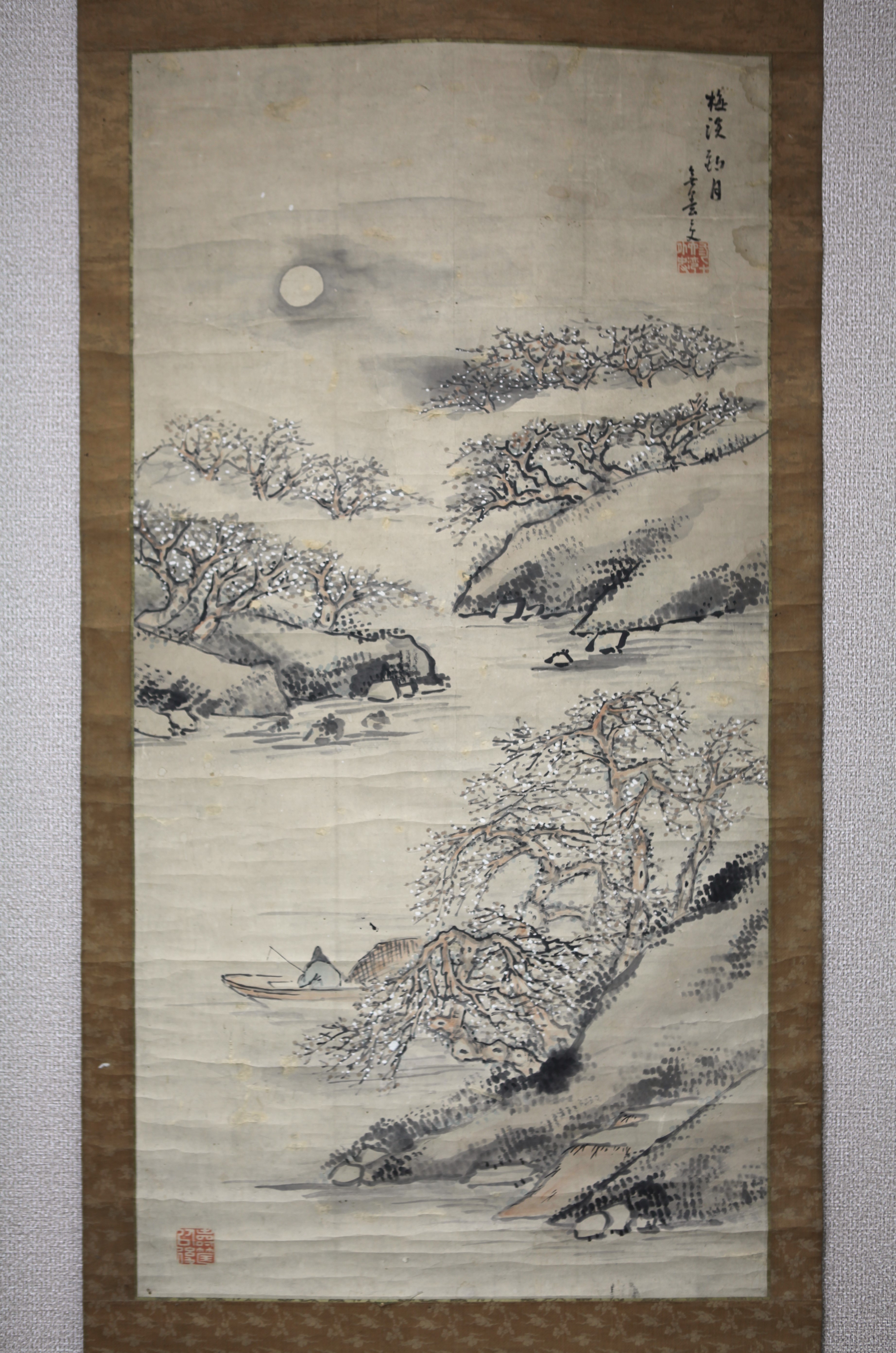 | 【真作】【風車】 長尾無墨 「梅渓釣月」◎肉筆紙本◎田能村竹田の門下 幕末明治の高遠藩士 長野県出身 宇夫形豊久の子 | ||||||||||||||||||||