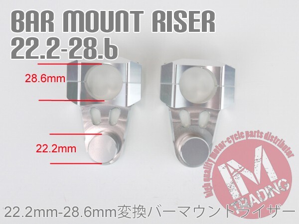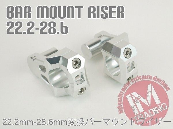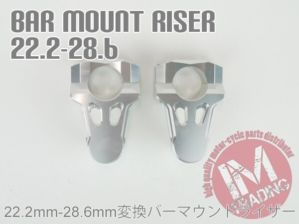 汎用の22.2から28.6mmへの変換機能付きのバーマウントライザーです。