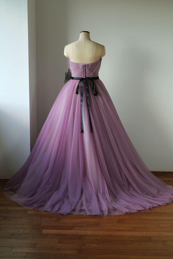 チュールたっぷりでグラデーションがきれいなドレス、黒いリボンは取り外し可能です。