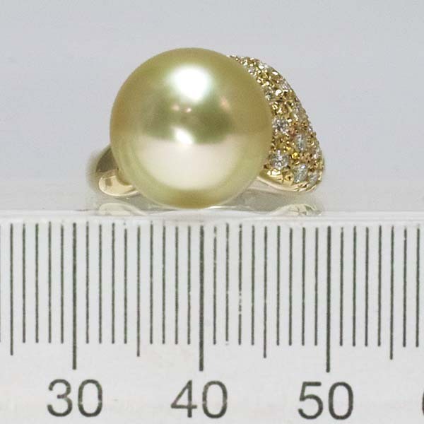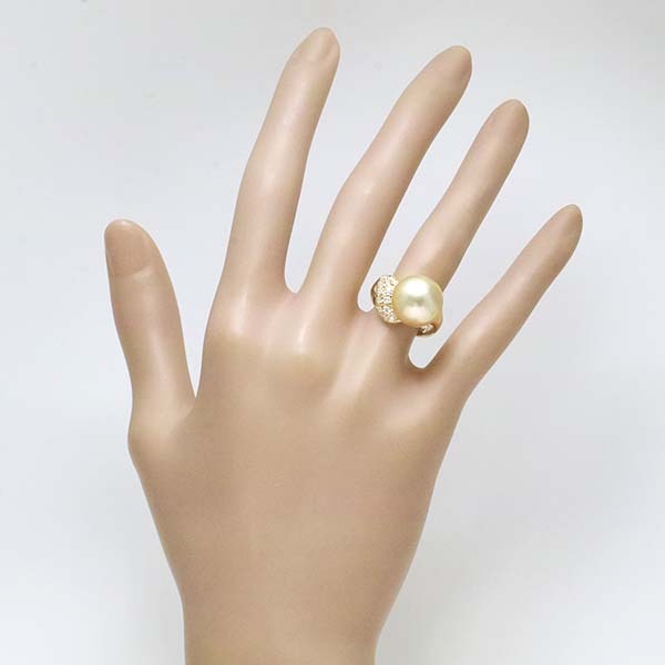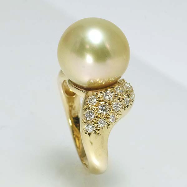 ゴールデンカラーの南洋真珠をメインにダイヤをセットしたタサキの18金製ファッションリング。| 商品詳細 | |||||||||||||||||||||||||||||||||||||
