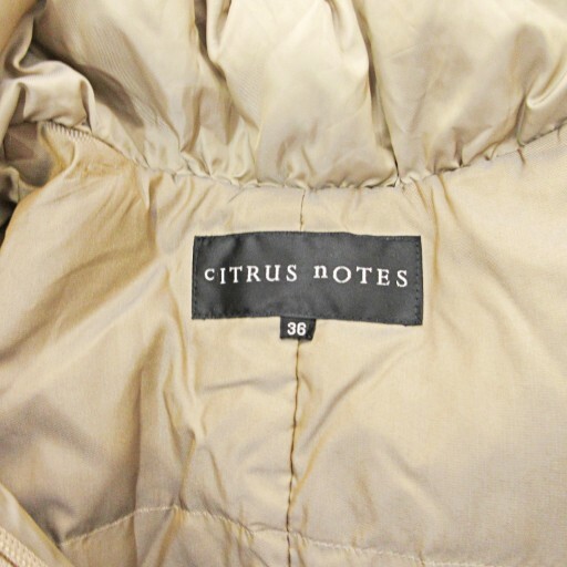 シトラスノーツ CITRUS nOTES ダウンコート ダウンジャケット ベルト付 ギャザー ショールカラー 36 ベージュ 0902 ■YHS1