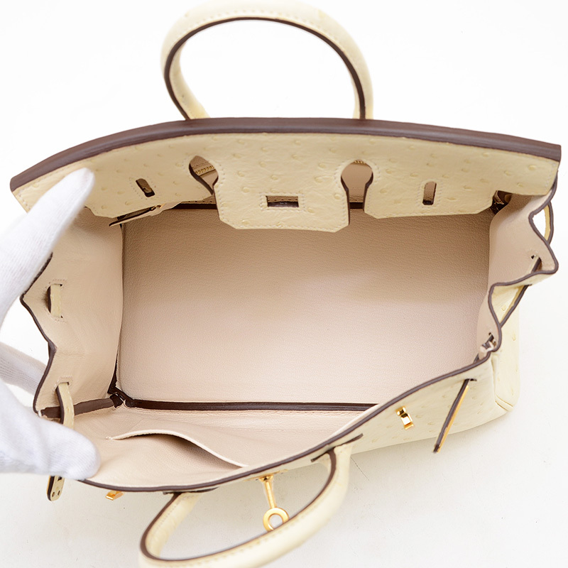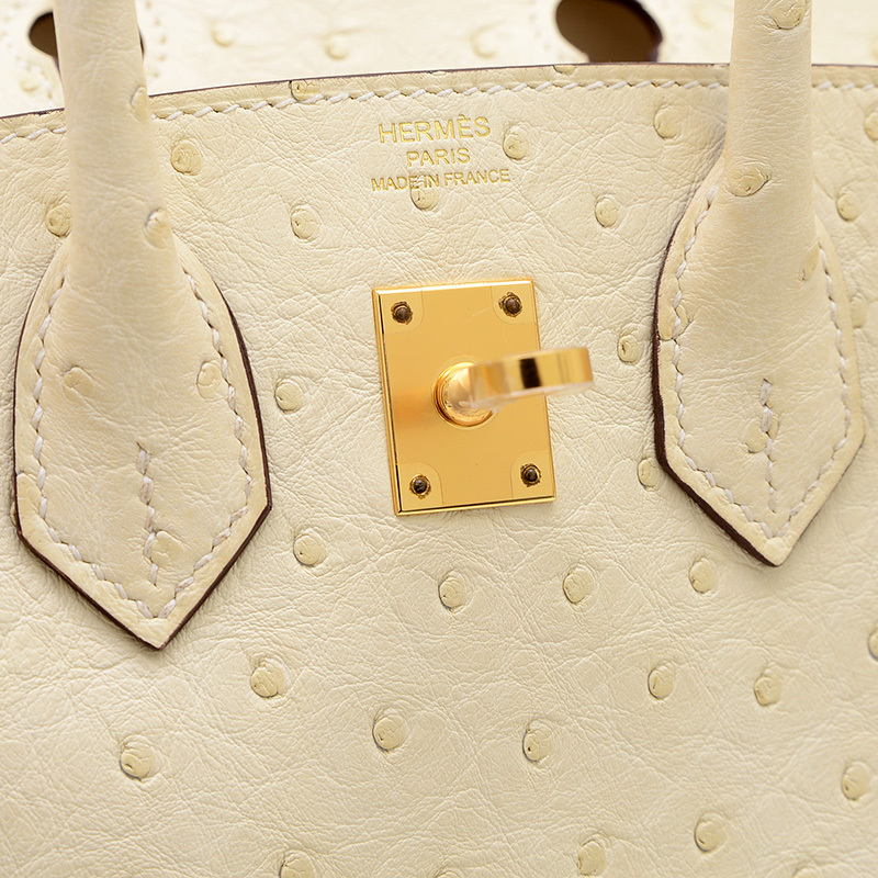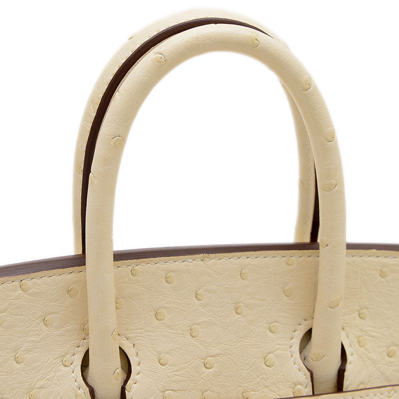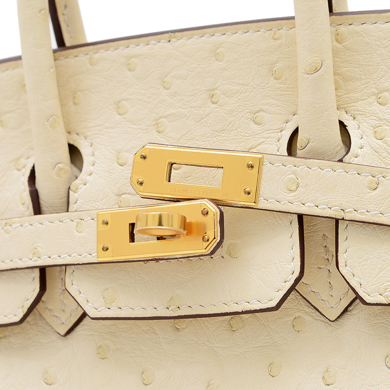 | 商品特徴 | 希少なオーストリッチレザーの独特な凹凸と、上品なナタ(オフホワイト)カラーが特徴のハンドバッグです。輝くゴールド金具が洗練されたアクセントとなり、コンパクトな25cmサイズながらもバーキン特有のエレガンスと存在感を放ちます。どんなスタイルも上品に格上げする、非常に人気の高い逸品です。 |