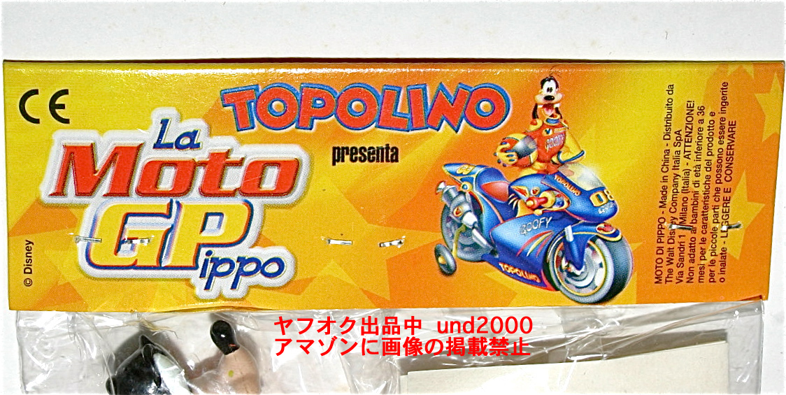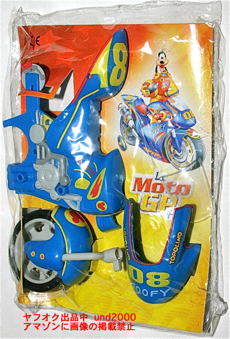 La Moto GPippo グーフィーのモトクロス・バイク。イタリアのディズニー週刊コミック誌、Topolino の4冊分の付録で完成するトイ。トッポリーノ(Topolino)はイタリアでミッキーマウスの事。グーフィーのフィギュア付き。バイク全長約15センチ。フィギュア約12センチ。プラスチック製。プルバックモーター内蔵。付録のみでマガジンはありません。未開封、未組立て品。未開封のため作動は確認していません。量産品のクオリティに付いては極端に状態の悪いものは別記しますが、ノークレームでお願い致します。お支払いはヤフーかんたん決済のみ。東京発、ゆうパック持込60サイズ(東京700円 - 沖縄1330円)、または定形外郵便(追跡番号、保険無し)660円での発送となります。(上記の送料はこの出品物のみの料金となります。複数落札、同梱包発送の場合、重さ、サイズが変わりますので送料が変わります。)3日以内のご連絡、かんたん決済の支払期限内(通常5日、支払方法により異なります)のお支払い厳守でお願いします。入札される前に「自己紹介」もあわせてお読みください。 検索用ワード トッポリーノ トポリーノ マガジン Magazin Mickey Mouse Donald Duck Disney Gadget ガジェット| 出价者 | 信用 | 价格 | 时间 |