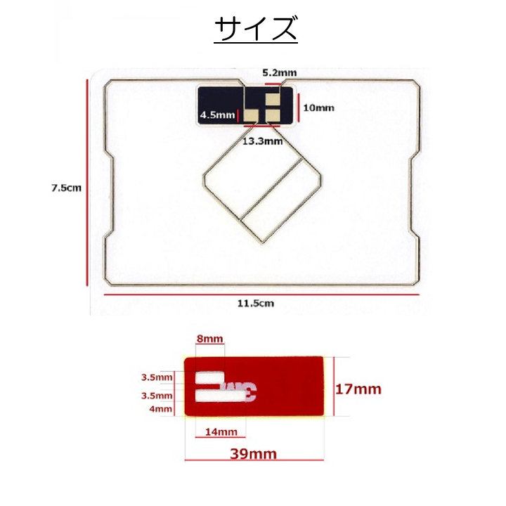 ・必ずサイズをご確認のうえご購入ください。 ・電波を通しにくいガラスやフィルムを貼り付けた ガラスでは受信感度が低下する場合がございます。 ・いかなる場合でも商品代金以上の保証は 御座いません。 ナビへの影響・車両事故や火災・破損・工賃等 その他トラブルの補償は一切できません。 費用の請求は承り兼ねます。 ・取り付けミスによる返品はご遠慮ください ・加工による動作不良の場合も交換はできません。 ・お客様都合による商品ページ未確認や 商品加工後の返品・交換・キャンセルは 一切行えません。 ・注意事項にご同意された方のみご購入下さい。 ご購入後は注意事項にご同意いただいたものと させていただきます。 予めご了承ください。 |