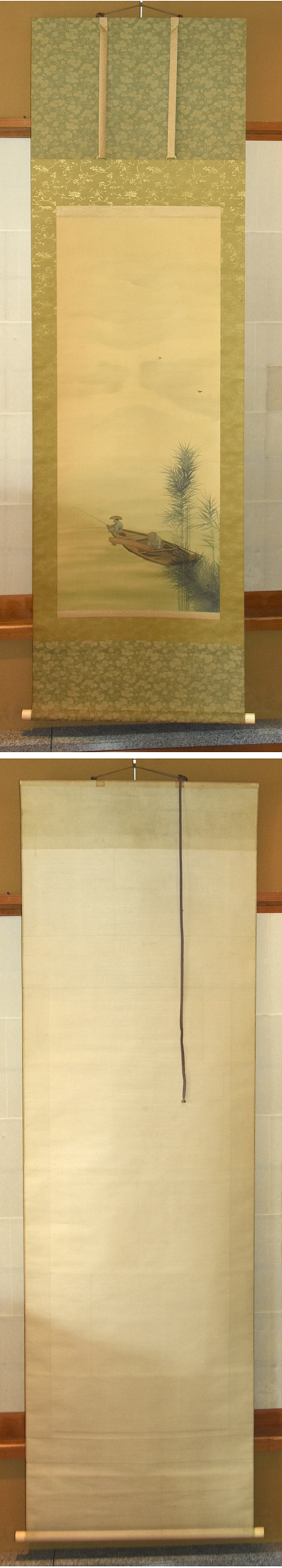 【模写】菱田春草「釣」釣魚図 絹本 掛軸 横山大観 極箱 塗二重箱 書画 絵画 日本画 風景画 古美術 骨董 軸 掛け軸 |