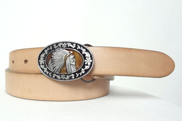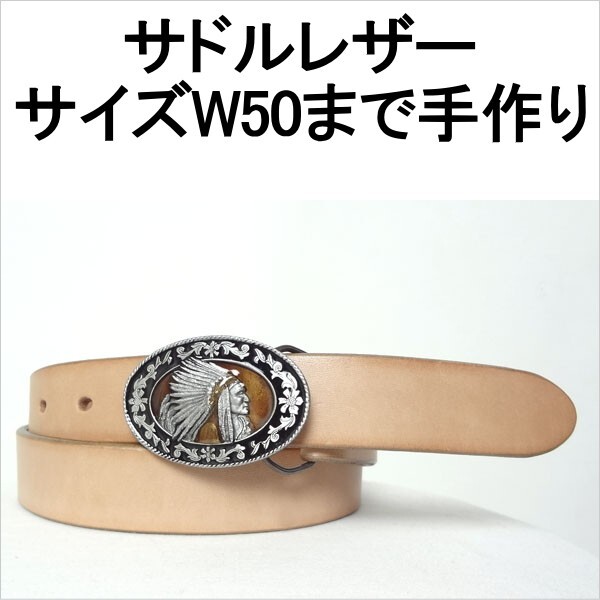 ジーンズにはサドルレザー!!色は使用するとあめ色へと変化しあじの出るタン(無色からだんだんキャメルになります)、革の幅は30mm、革の厚さは4,5mmの1枚革とハードですがだんだんとしなやかになってゆきます、大きいサイズW50インチまで製作