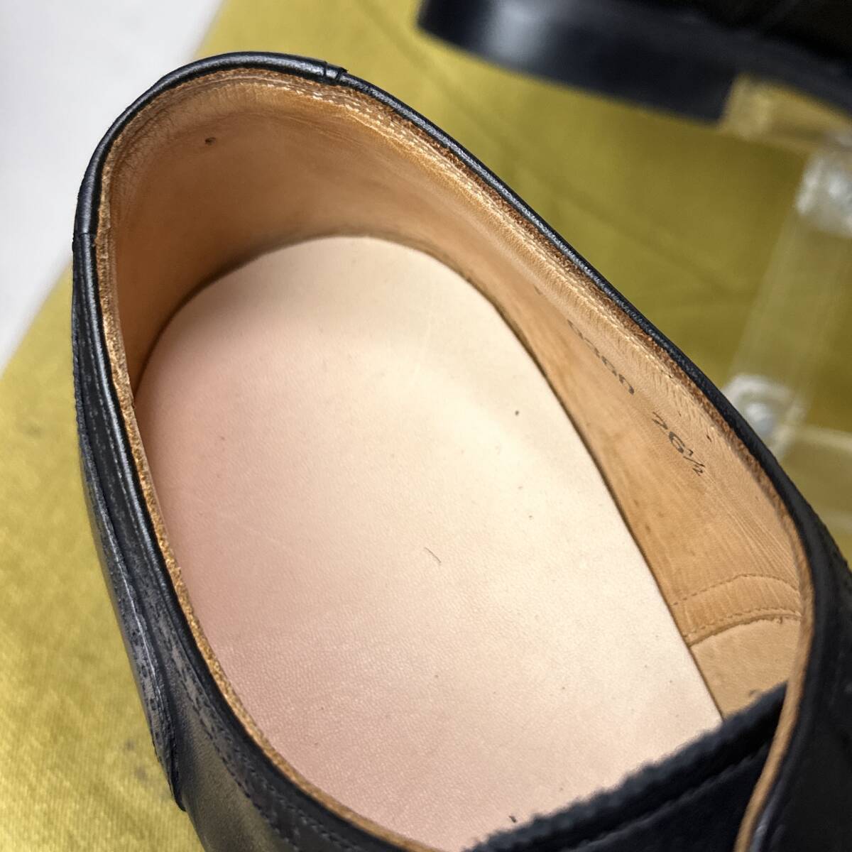 | 少し使用感があり、細かなスレ・傷がありますが、しっかり手入れしてありまだまだ履くことが出来ます。 旧型のインソールで表面の割れがあったため、ヌメ革にて同サイズのインソールを制作して貼り付けてあります。 | ||||||