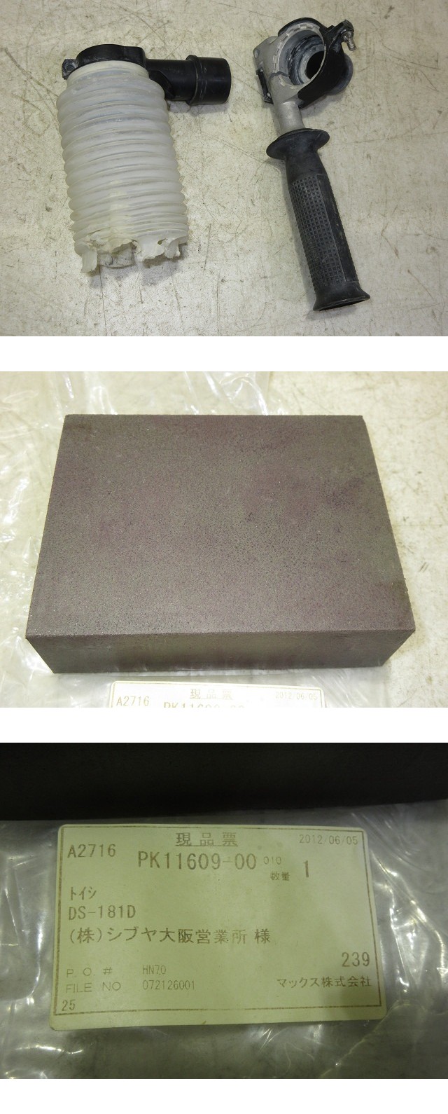| こちらで動作確認しておりますが、特に問題は感じられませんでした。 MAX マックス 乾式静音ドリル DS-181D 写真に写っている物がすべての付属品になります。 | ||