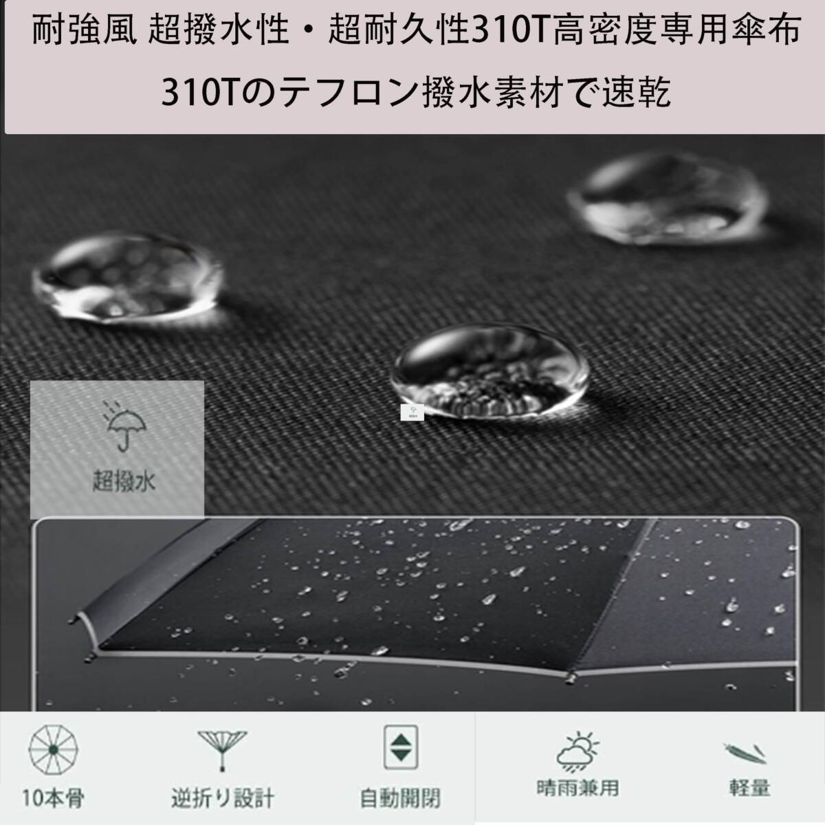 | 商品名 | 2024新型ワンタッチ自動開閉 メンズ傘 折りたたみ傘 10本骨自動開閉傘 折り畳み日傘耐風撥水 超撥水傘 310T高密度晴雨兼用傘 メンズ | ||