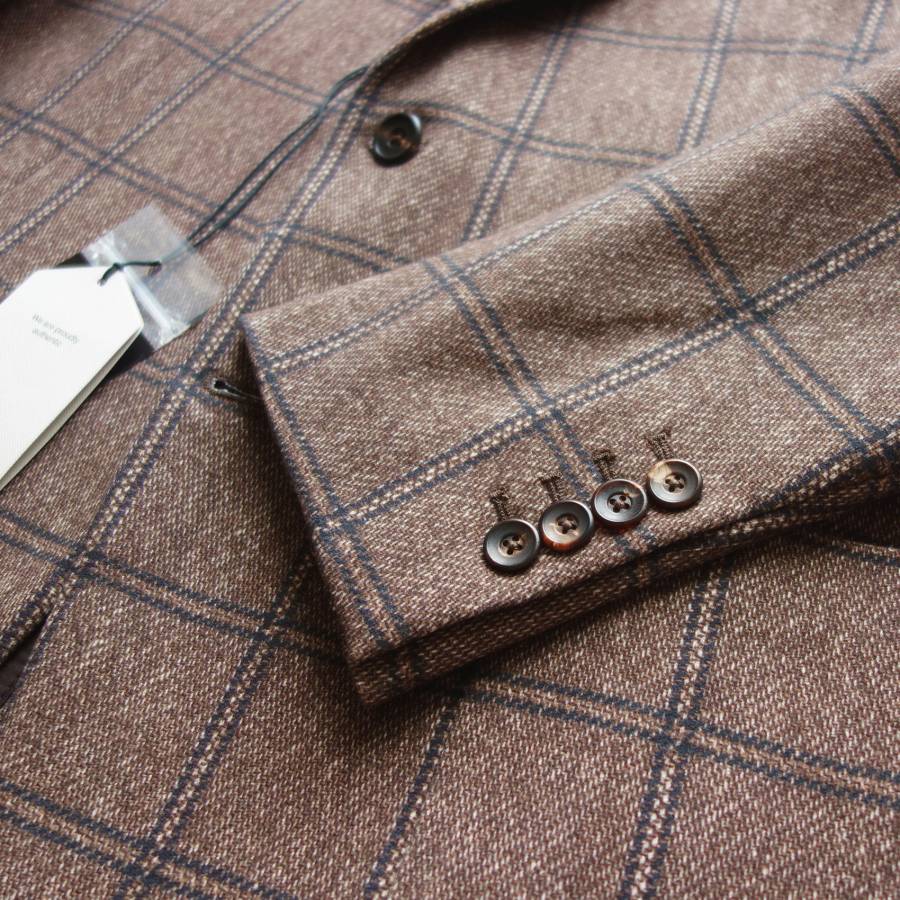 こちらのCN4122は、“温もり溢れる英国柄ウールフランネル”をプリントした秋冬用の裏起毛ジャージーで作られています。このため、カジュアルなイメージが強いジャージージャケットでありながら“オトナな雰囲気”が漂っており、布地のジャケットのような品のあるお洒落を楽しんで頂けます。生地の段階で洗いを施すことで、オトナらしさの中にカジュアル感やリラックス感が溶け込んだ仕上がりになっているところがミソ。肩肘張らずデイリーに使えます。英国伝統のウィンドーペーンが小気味良いアクセントになったジャージージャケットはこれぞイタリアという洒落っ気に溢れており、袖を通すだけで洗練された着こなしが叶います。フロント釦を留めてきちんと着てもいいですし、フロント釦を外してカーディガンのように羽織ってもお洒落ですよ。
