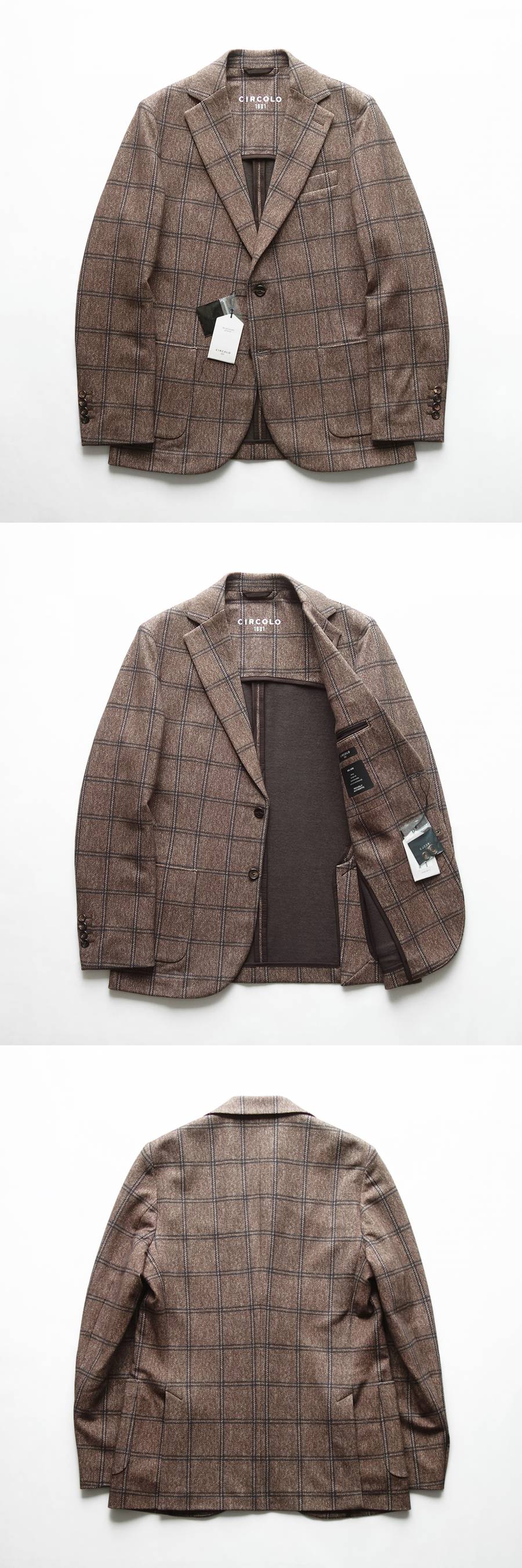 ベーシックな2つ釦ジャケットですが、やや細身で着丈が短く、ウエストが程よくシェイプされているので洗練された印象を与えます。ジャージージャケットとは思えない端正な佇まいですが、両腰のパッチポケットによって絶妙なカジュアル感がプラスされているのでカッチリしすぎず幅広いコーディネートに合わせられます。イタリアならではのテーラーメイドの雰囲気を残しつつも、それをモダンに昇華させているところが上手いですね。チルコロのジャケットと言えばこれ!といった完成されたスタイルになるとお考えください。