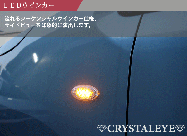 商品番号:D074CL 車種:エブリィワゴン(DA64) 商品名:LEDサイドマーカー(流れるウインカー) カラー:クリアータイプ ----------- ※ご注文後のカラー変更はご対応致しかねますので ご入札前に必ずカラーをご確認下さい。 ▼ 商品説明 クリスタルアイ新製品 スズキ車種用(適合表要確認) LEDクリスタルLEDサイドマーカー LEDサイドマーカーに流れる シーケンシャルウインカータイプが登場です。 しかも高輝度SMDチップ型LEDを限界の10発で点灯時の明るさと 粒粒にLEDが点灯するサイドビューはインパクト抜群。 ※適合表に記載の無い対応車種もあり お問い合わせください。 ※購入前にLEDサイドマーカーと純正の形が同じか確認してください。 ▼ 商品詳細 ■新品左右セット ■ハイフラ防止抵抗内臓 ■カプラーオン ■高輝度SMD型LED10発仕様 点灯動画はこちら ▼ 適合車種