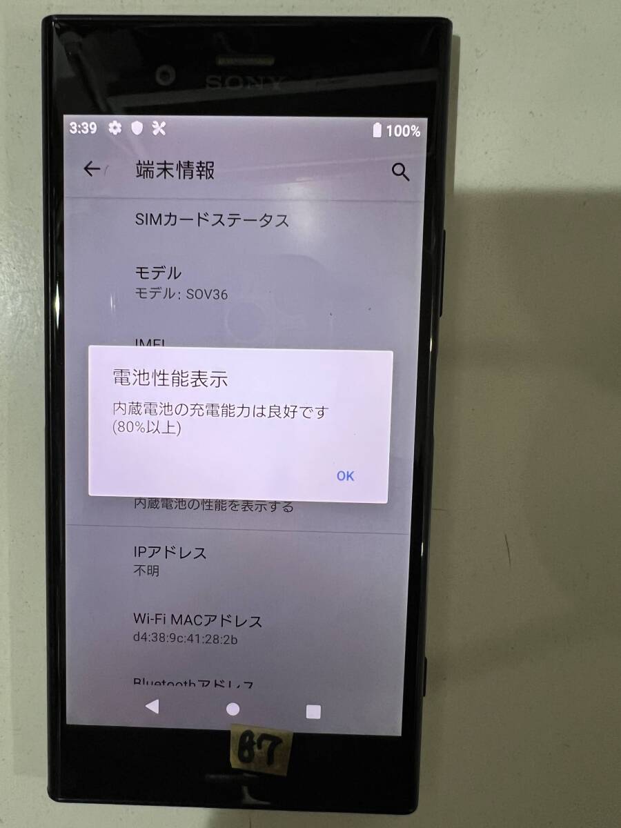 管理番号87 au Xperia XZ1 SOV36 判定〇 現状渡し 送料0円(手渡し可)から