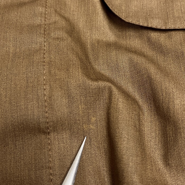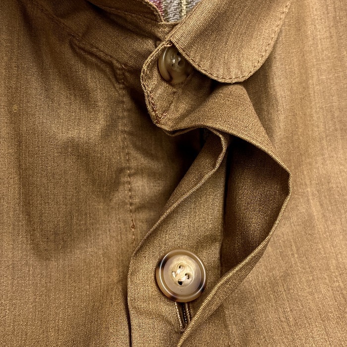 | 商品状態・ディテールなど | (※実測寸法など、多少の誤差はご容赦下さい。) (※商品は衣類の場合は全て畳んで保管しており、服飾雑貨も靴以外は必要に応じ畳んで保管しております。保管や梱包による畳み皺などはご了承下さい。) ●気になったダメージの場所と種類: ・所々:- ・全体:- ・内側:左前身頃の襟元あたりにシミの箇所と裏地に欠損箇所 ・肩:- ・襟:- ・胸:- ・腹部:若干シミの箇所 ・裾:- ・右袖:- ・左袖:- ・袖口:- ・背中(上):- ・背中(下):- ●その他ディテール:フライフロント、両胸ポケット、チェック柄裏地、表地は無地、襟が短め、丸襟、ショルダーギャザー ●付属品など:- ●その他:- |