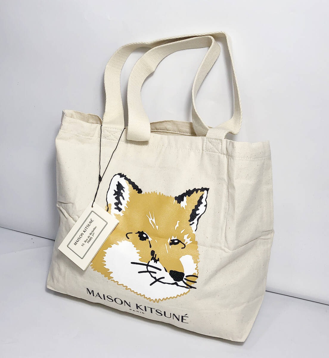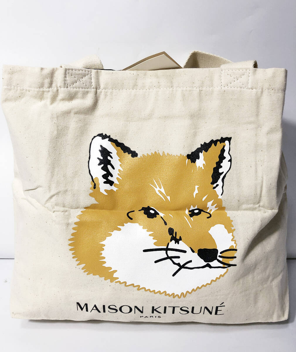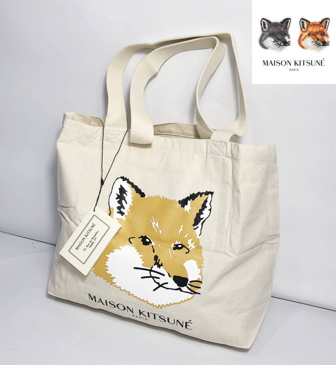 新品/人気■メゾンキツネ フォックスヘッド キャンパス トートバック 生成り 容量多い/MAISON KITSUNE FOX HEAD tote bag