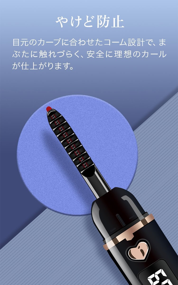 誰もがうらやむ印象的な目元をつくれるホットビューラーです。 電源を入れて10秒で予熱完了! 忙しい朝や休憩時間でもすぐに使えます。 理想のまつ毛に仕上げる!4段階の温度設定が可能!! 設定温度メモリ機能で温度の再設定の手間がありません。 安全機能もばっちり搭載! 電源OFFにし忘れても安心な自動電源OFF機能。 目元のカーブに合わせたコーム設計でやけど防止。 持ち運びもしやすく、電池交換が不要な充電式です。 また、USB Type-C対応で急速充電が可能です。 【商品詳細】 カラー:ブラック サイズ(約):137mm×22mm 重量(約):30g 充電方式:Type-C 急速充電 【商品内容】 本体、保護キャップ、USB Type-Cケーブル、ブラシ |