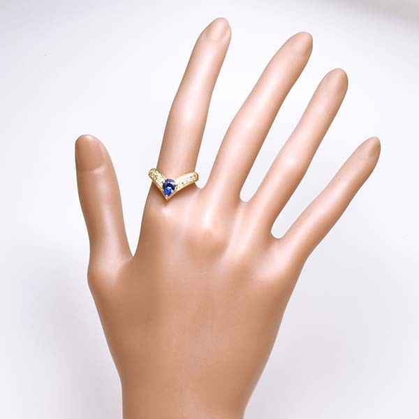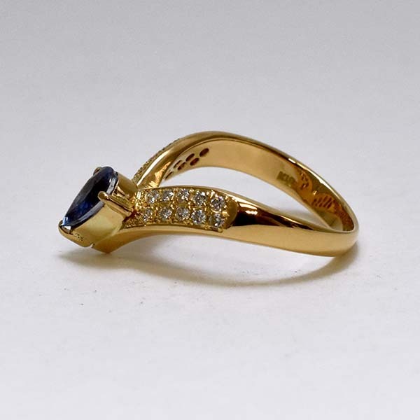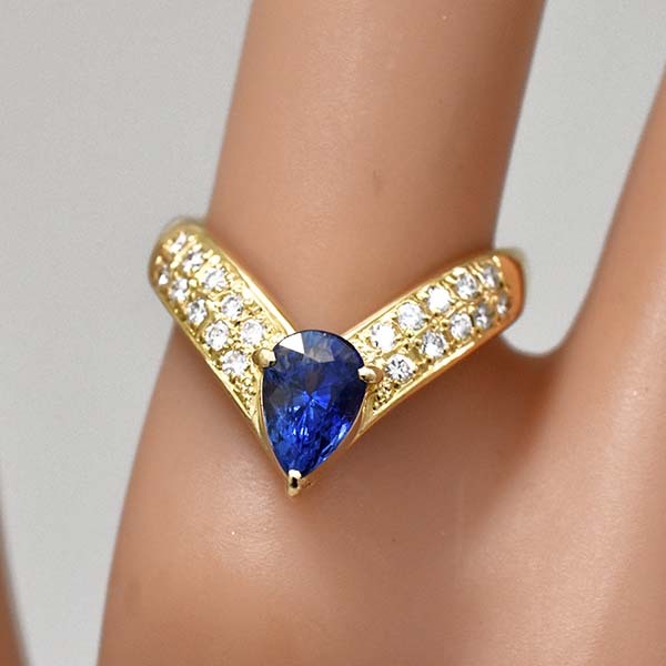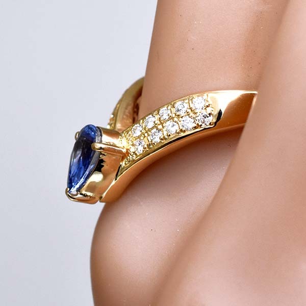1.23ctのペアシェイプカットのサファイアをメインにセットした18金製ファッションリング。| 商品詳細 | |||||||||||||||||||||||||||||||||||||