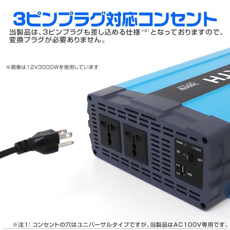 | ReBIRTH 正弦波 車載 電源インバーター 3ピンプラグ対応 USBポート付 ショート防止保護カバー付 |