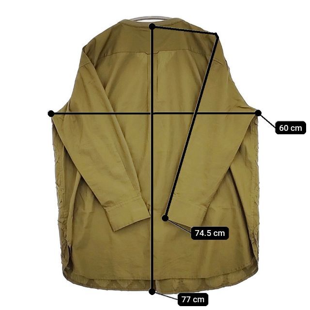 | 実寸サイズ | 着丈:約77cm 身幅:約60cm 裄丈:約74.5cm ※採寸画像がある商品はハンガーに吊るした状態での計測のため、平置きでの採寸とは差が生じる場合がございます。平置きでの実寸サイズをご希望の場合は、ご購入前に必ずご質問ください。 ※記載以外のサイズが合わないことを理由とした返品はできませんので、 記載部分以外で実寸サイズの気になる箇所があれば必ず購入前にご質問ください。 |