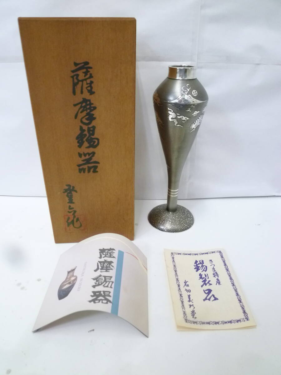 | #42051 【長期保管品】 さつま 薩摩 岩切美巧堂 登六作 薩摩錫器 一輪挿し 花瓶 | ||