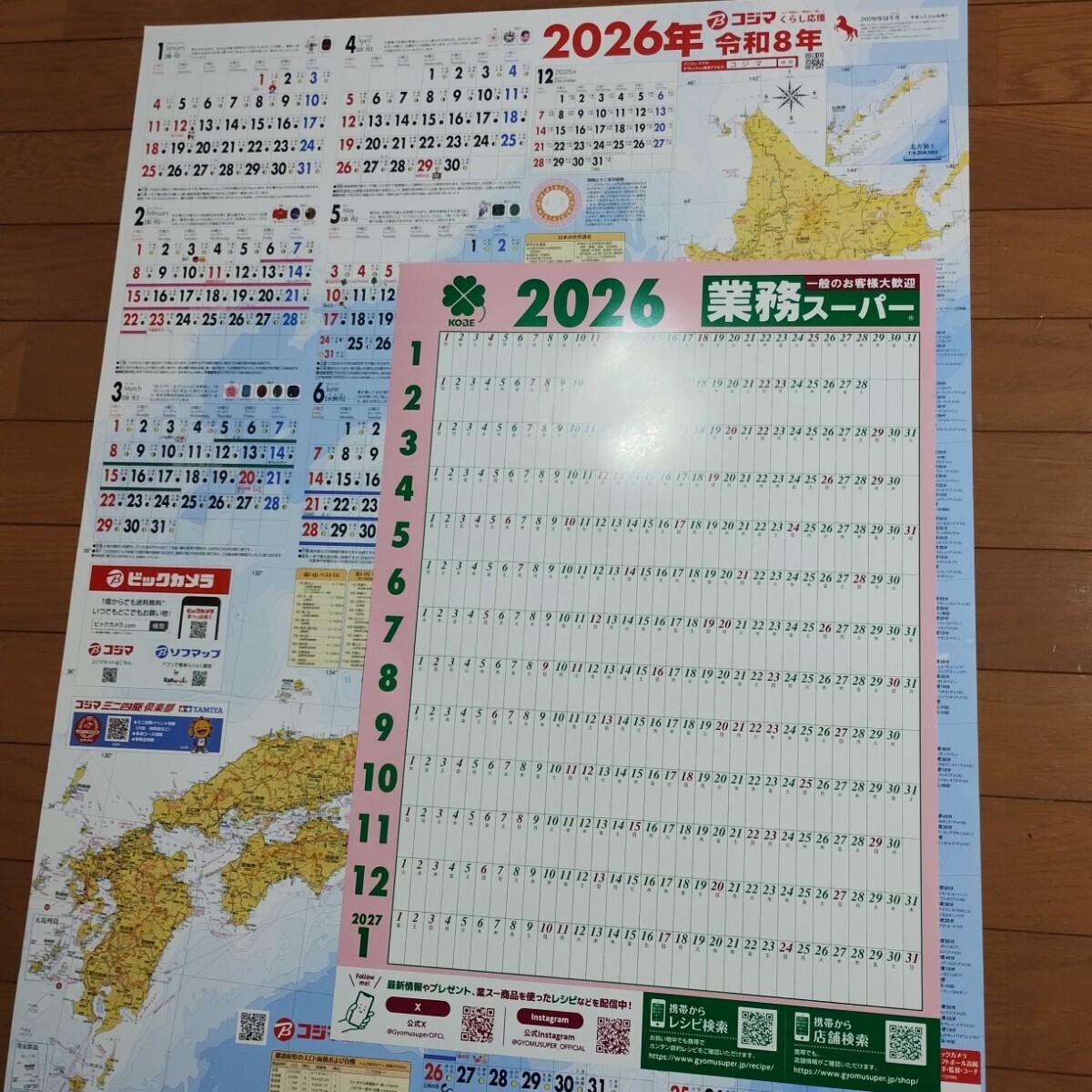 2026年ビックカメラコジマカレンダーと業務スーパーカレンダー(B3サイズ)のセット| 出价者 | 信用 | 价格 | 时间 |