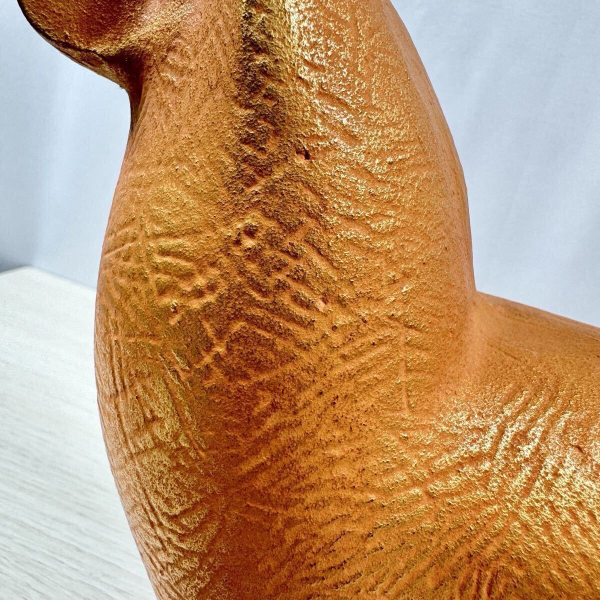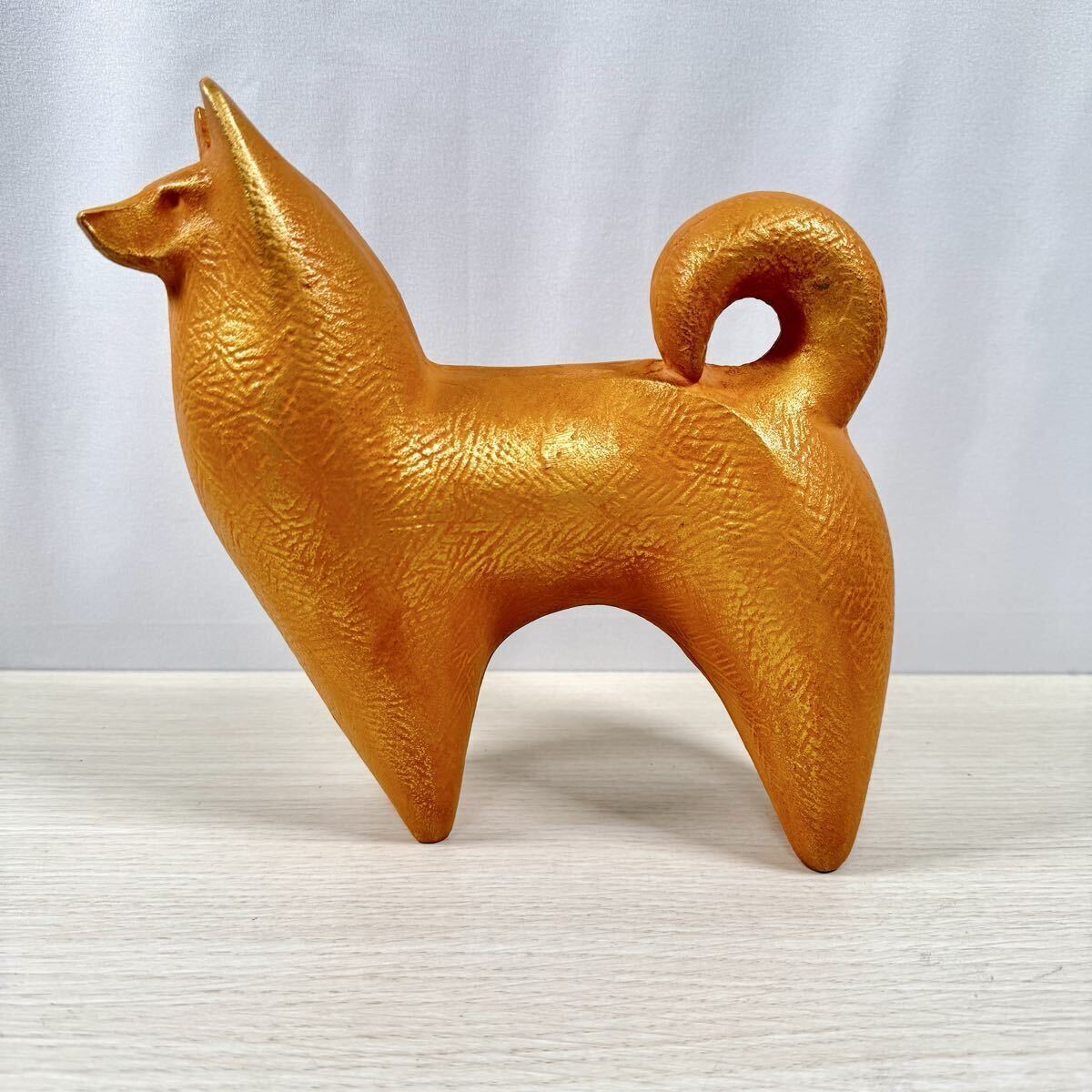 ご覧いただきましてありがとうございます。 商品タイトルのお品の出品になります。 よろしくお願いします。 当方、専門家ではない為、 質問に答えられない場合がございます。 金色の犬の張子(風)オブジェです。 ユニークな造形と艶のあるゴールドカラーが特徴的で、 和風の空間や開運アイテムとしてもおすすめ。 底面や表面に若干の使用感がありますが、目立つダメージはありません。 サイズ(約):幅23×奥行9×高さ21cm 重量:約2654g インパクトのある存在感で、お部屋のアクセントや贈答用にも適しています。