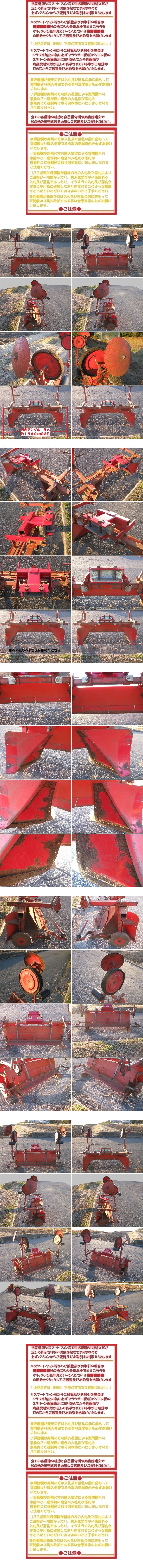 ●鋤柄農機 マルチ平高うねたてビニール張り機 平高成形マルチ 平高整形マルチ 汎用平高畦マルチ 型式不明 の出品です。 ■本体外寸 奥行き 約700㎜ × 横幅 約1600㎜ × 高さ 約1300㎜ (画像1の状態にて) ■スケルにて計測していますので絶対値ではありません。 (各部各所の最大張り出し部分を含んでおります。) ●旧農家さんの方から不用という事で譲られました。 ★地元でも大変人気な機種となります。 ●マルチャーではかなり有名なメーカーですが完全に売切ります。 ★値引き交渉等は一切考えておりませんのであらかじめ前もってご一報いたします。 ★鋤柄農機のこのマルチャーは色々な農作物等に汎用および使用できる為に全国的にも的にもかなり人気がある機種となります。 ●前所有者さんの方が離農に伴い今後使用する予定がない為に譲られたものとなります。 ■キズ&サビ&汚れ&色あせ&使用感等が見えます。 ◆譲られた時から取付ヒッチが欠品していましたので当方で保管していた取付ヒッチを装着していますが加工箇所や簡易的に塗装しておりますのであらかじめご了承ください。 ●アーム部分の両サイドの左右の車輪に付いているマルチ押さえ用のスポンジは経年劣化により痛みやボロボロになっております。 (※スポンジはお近くの各農機具大手ディーラーのクボタ・ヤンマー・イセキ・ミツビシ・農協等でも注文できますが他の出品者様となりますが内でも販売されております。) ●うねたて部分の内側に本来装着されている白色の樹脂板は左右共に欠品しております。 (※純正品の白色の樹脂板はお近くの各農機具大手ディーラーのクボタ・ヤンマー・イセキ・ミツビシ・農協等でも注文できますが片側だけで2万円以上します。) (※純正品の白色の樹脂板は高価ですのでホームセンター等に代用品の樹脂プラ板等が売っていますのでそちらを購入し形を切り取って実際に取り付けている方もおられます。) ●譲られたものですので各パーツ類にはそれなりに使用感やヘコミや曲りや色剥がれや塗装箇所等が見える部分があります。 ●全体的に色あせやサビ等があり幾つか腐食している部分もあり且つ苔の付着しているところも見られ正直見た目は劣りますので過剰な期待はご遠慮ください。 ■前所有者さんの方の作業の効率化の状況によって足りない部品等がある場合がありますので各画像を参照するか現物確認の上、ご検討ください。 ●保管場所が狭いので保管している時にキズがついたり色剥がれ等がおこる場合がありますのであらかじめご了承ください。 ◆画像のものが全てとなり説明書やその他の部品や付属品やオプション品等はありません。 ●とくに当方側にて整備やメンテナンスや清掃やクリーニング等はしておりませんがこのまま譲渡いたしますのであらかじめご了承ください。現状渡し品です。 ◆各画像では分かりにくいかも知れませんが全体的に色あせやサビ等が見え状態は劣りますのであらかじめご了承ください。 ●今現在は外に置いている為に各画像の状態よりもどうしてもキズ等がついたり色剥がれや色あせやサビ等が発生する場合がありますのであらかじめご了承ください。 ◆状態が劣る為と現状渡し品及び未整備品の未清掃品の為、部品取り品&ジャンク品&レストア向け品扱いといたします、価格反映安価スタートにて完全現状渡しで処分です。 ●この機種に興味がある方はこの機会にご検討ください。 ■このような状態でもご理解頂ける方のみご購入をお願いいたします。 ●状態は当方側と各自個人等とでは見解が異なる場合や見落とし等がある場合がありますので遠くの都道府県及び市町村であっても入札及び落札する前に現物確認をおすすめいたします。 ※現物確認なしで入札及び落札した場合は事前に現物確認して同意のもとに入札及び落札したものと同様の扱いとなりますのでご了承ください。 ●いかなる場合がありましても当方側にて見落としや説明不足等がありましても一切責任はもてません、あくまでもこのままの状態にて譲渡いたしますのでここに明記させていただきます。 ★尚、値引き交渉等は一切考えておりませんのであらかじめ前もってご一報いたします。 ■青森県の県南地域では主にニンニクの栽培の際に使用されている方が圧倒的に多いです。 ●ちなみに今現在のシーズンにこのマルチャーをまるまる新品を注文すると受注生産となり、今年中の入手が困難な場合がある様子ですので大変貴重です!! ■このような状態ですがあくまでも必要としている方にお譲りいたします。 ●この機種に興味がある方はご検討ください。 ★尚、値引き交渉又は即決等は一切考えておりませんのであらかじめ前もってご一報いたします。 ◎送料はおおよその概算となりますが下記へ記載済みですのでご確認ください↓↓↓ ※このままの状態にて発送いたします。 ●直接引き渡し希望の方は入金先払いのみの条件となりますが当方側にて入金確認後、後日となり